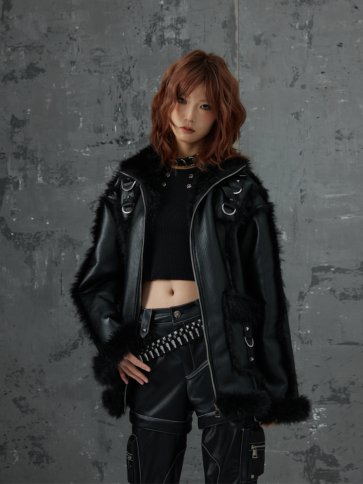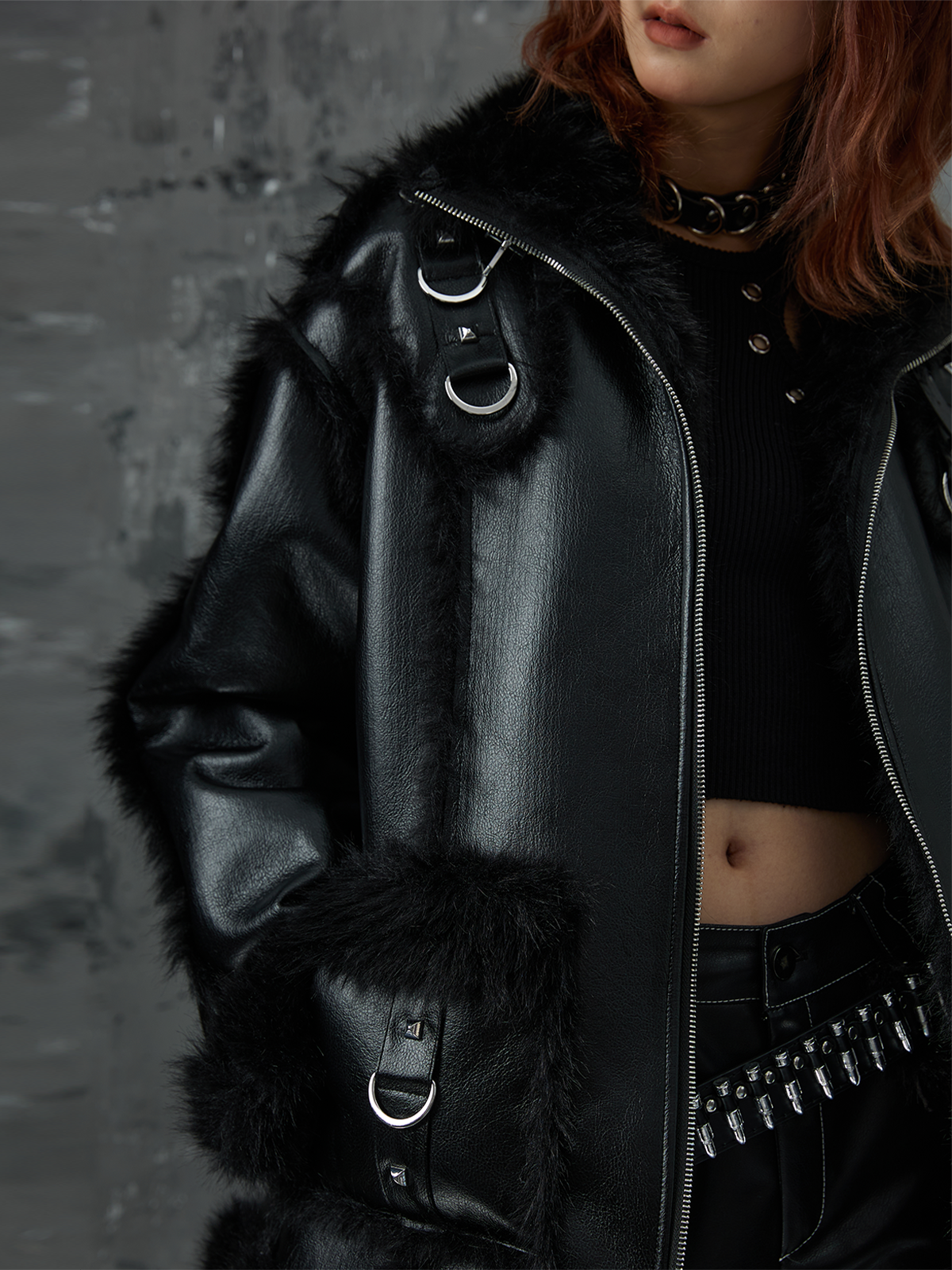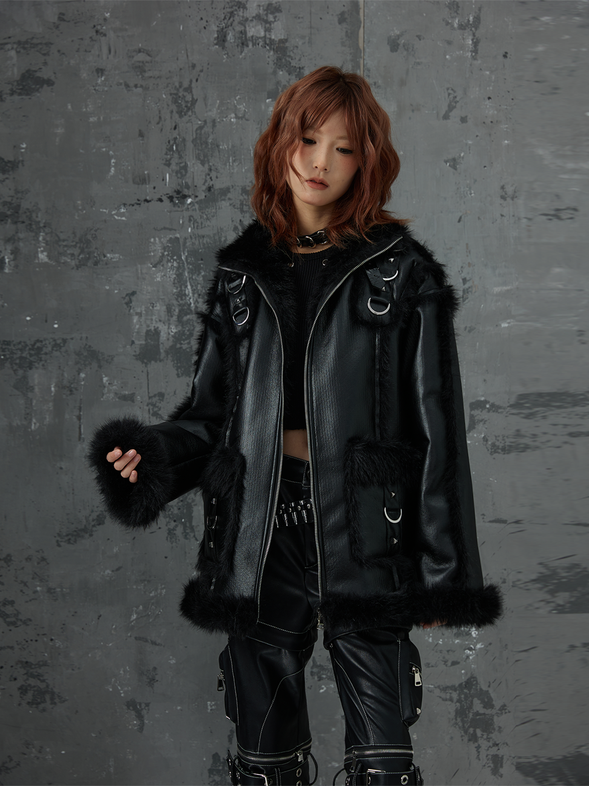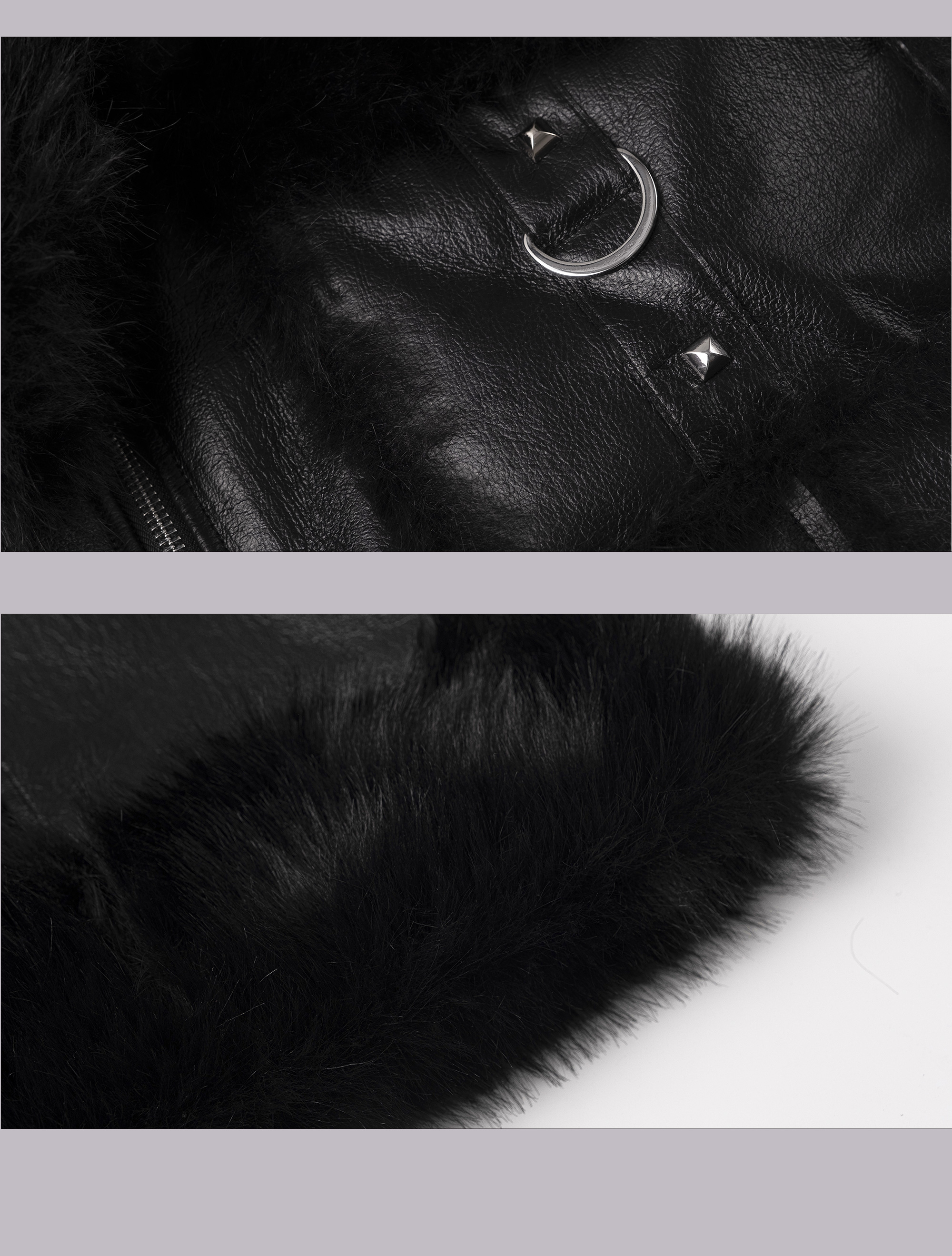 Punk Oversize Metal-Accent Shearling Jacket NA8147