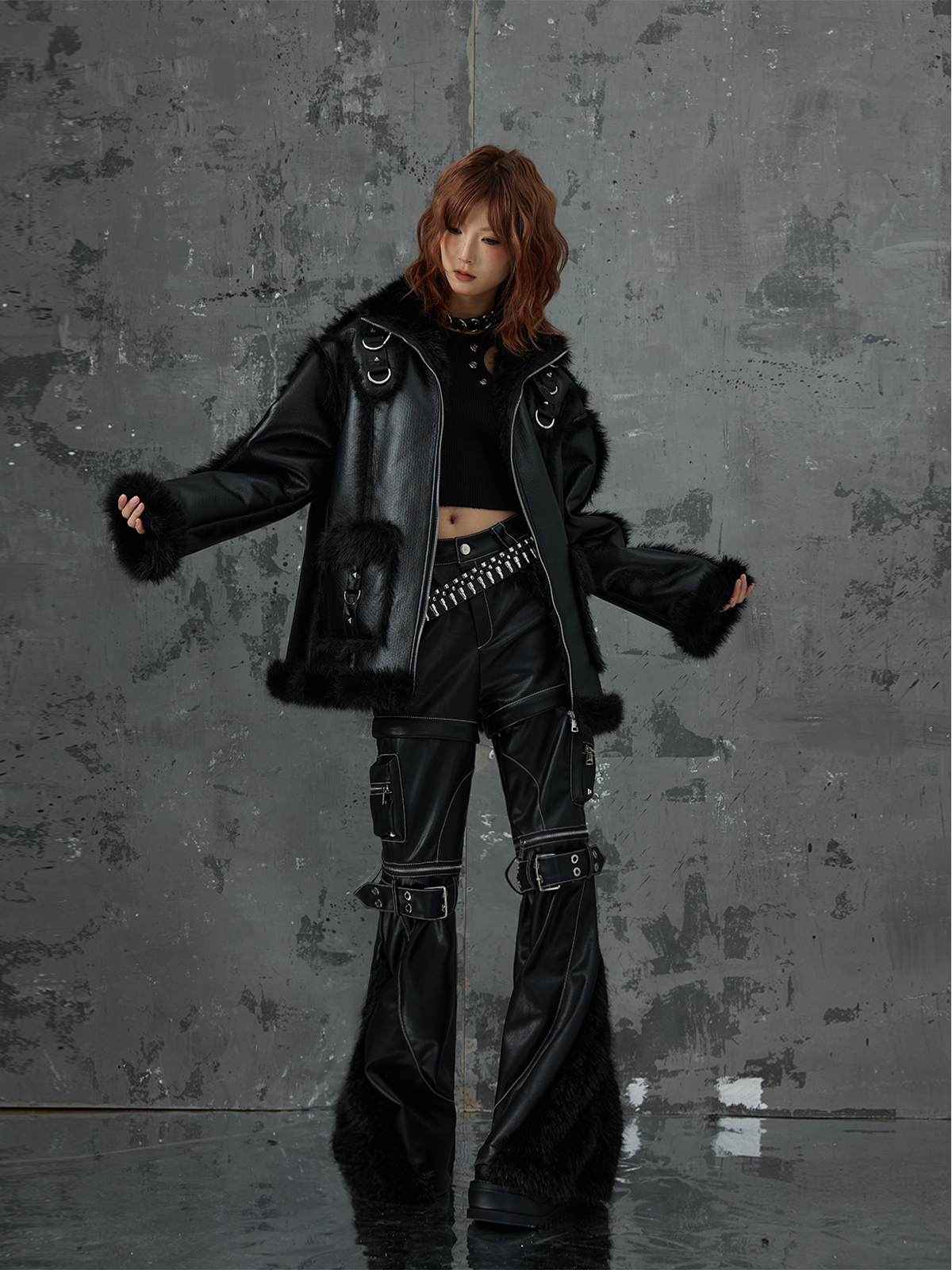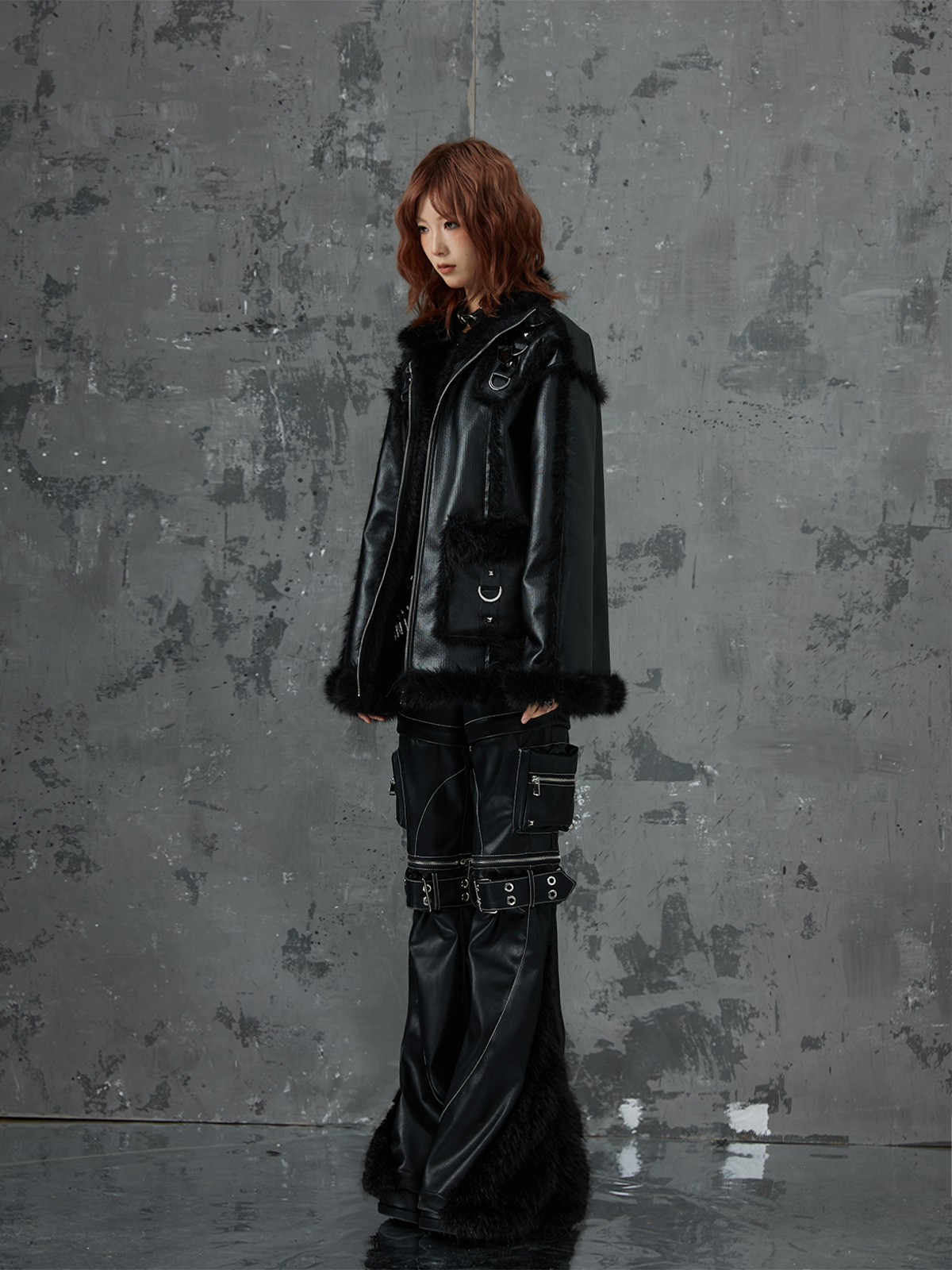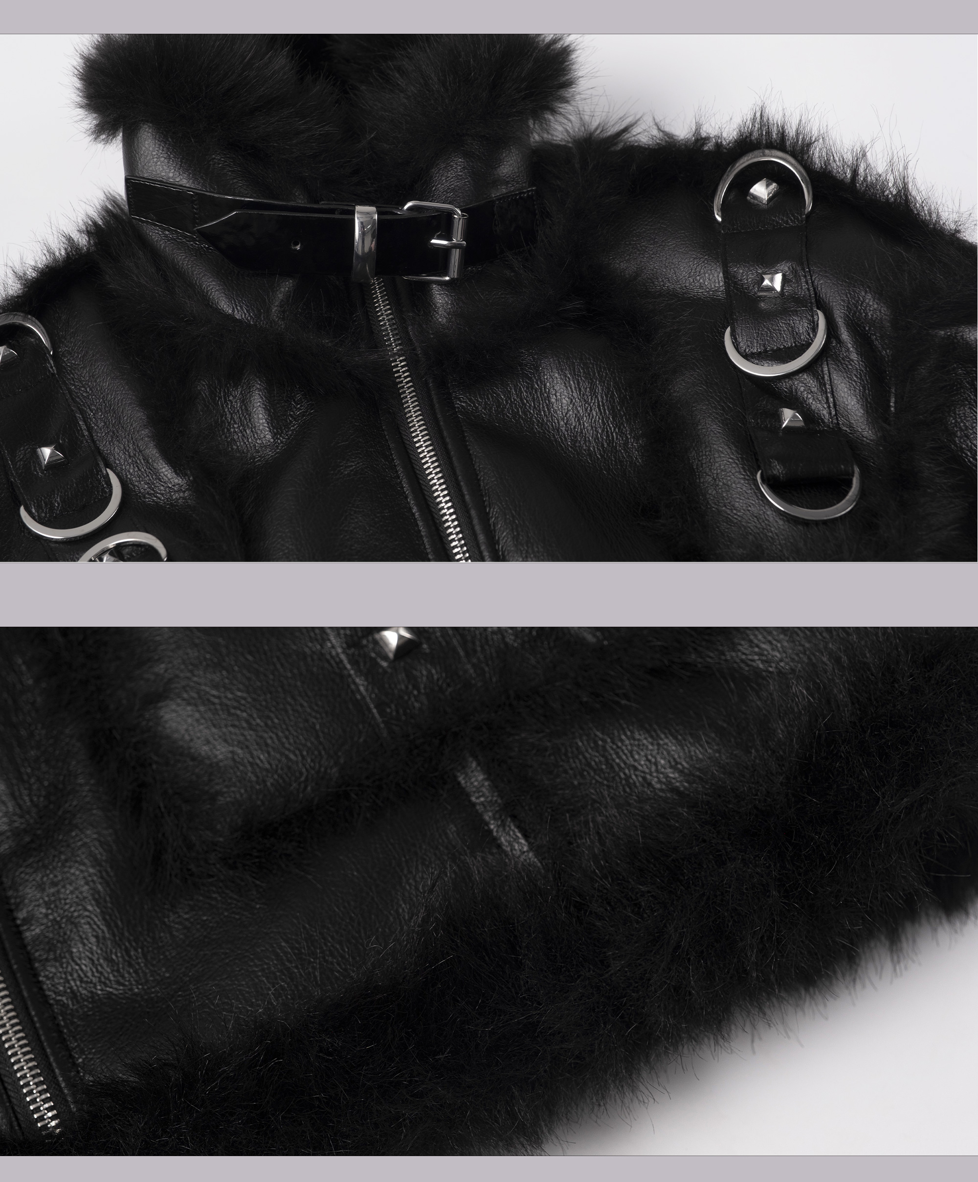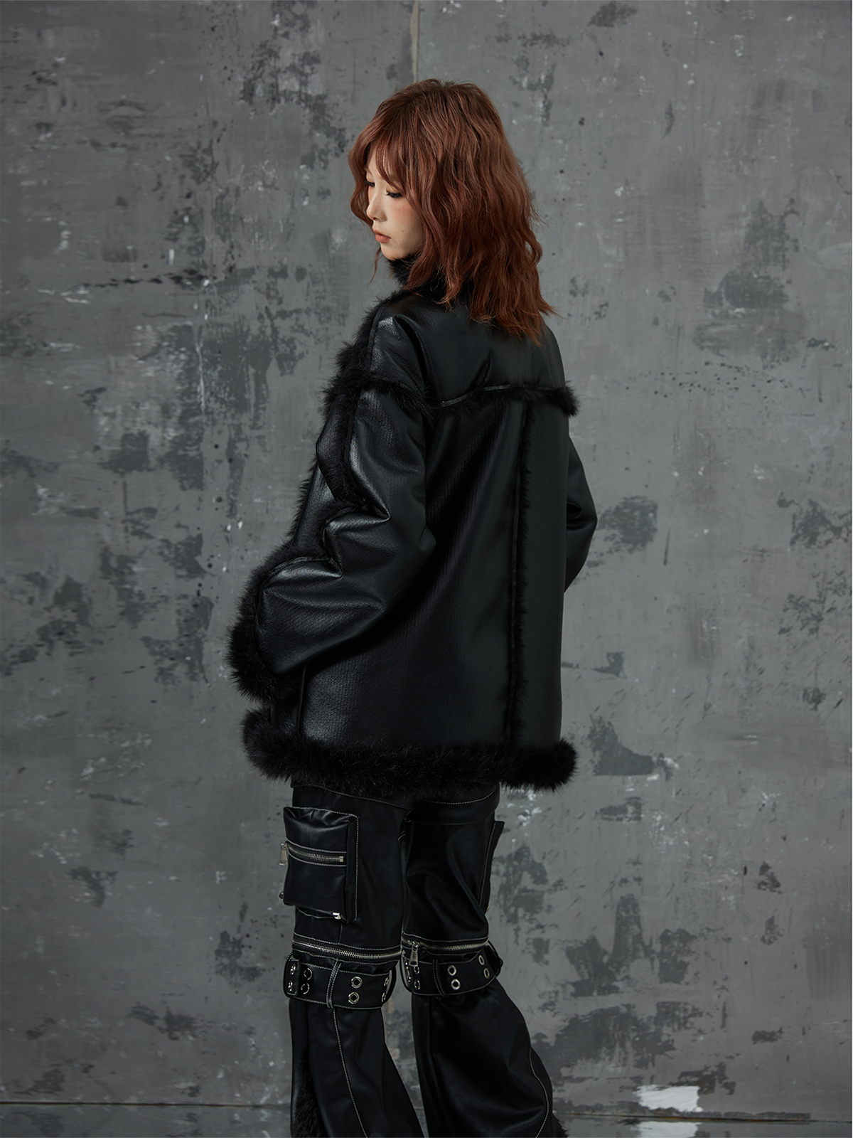 Punk Oversize Metal-Accent Shearling Jacket NA8147