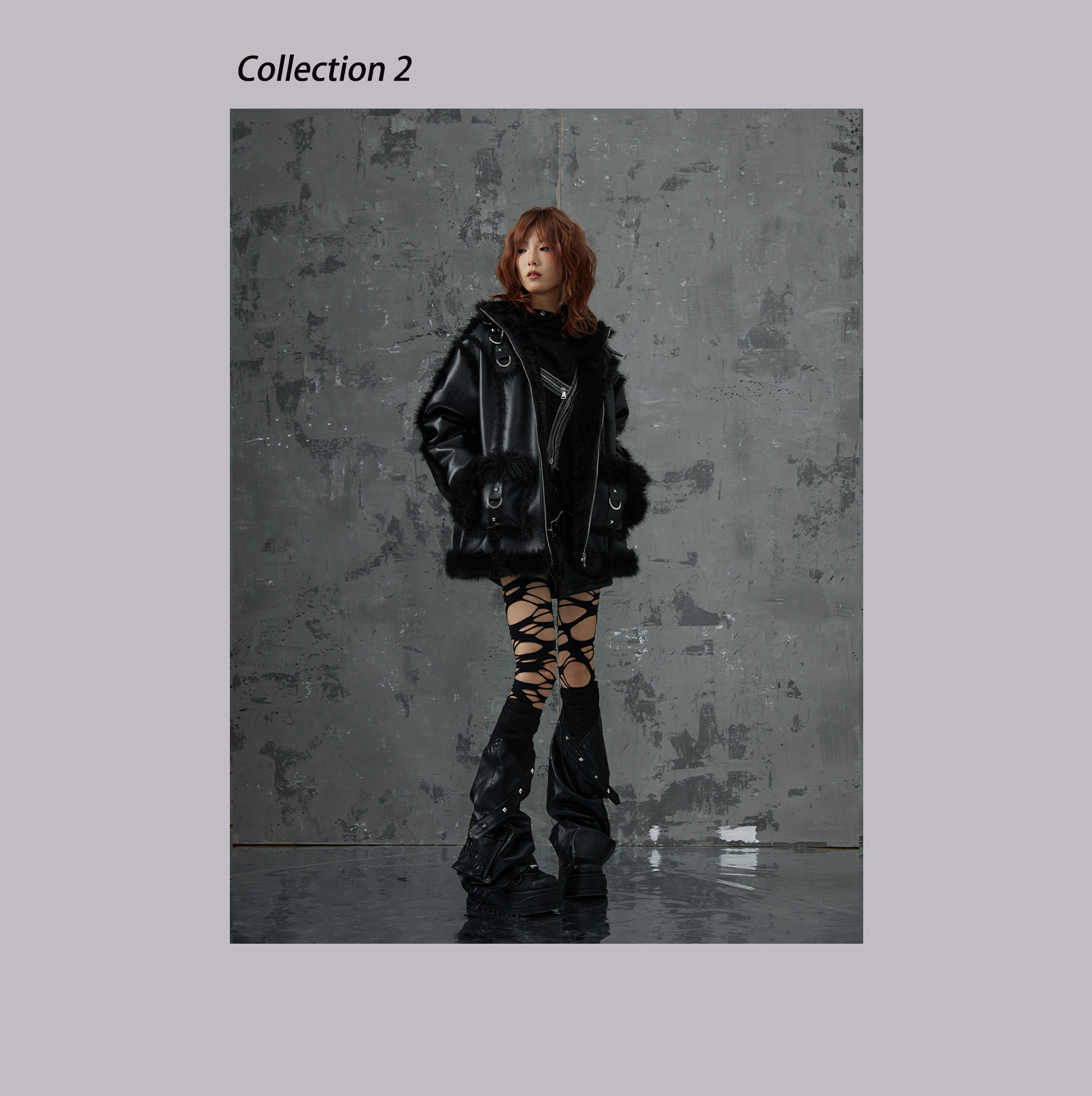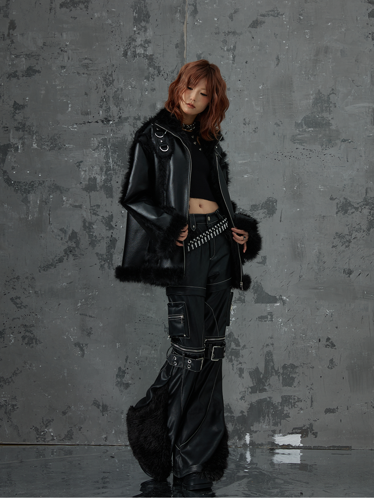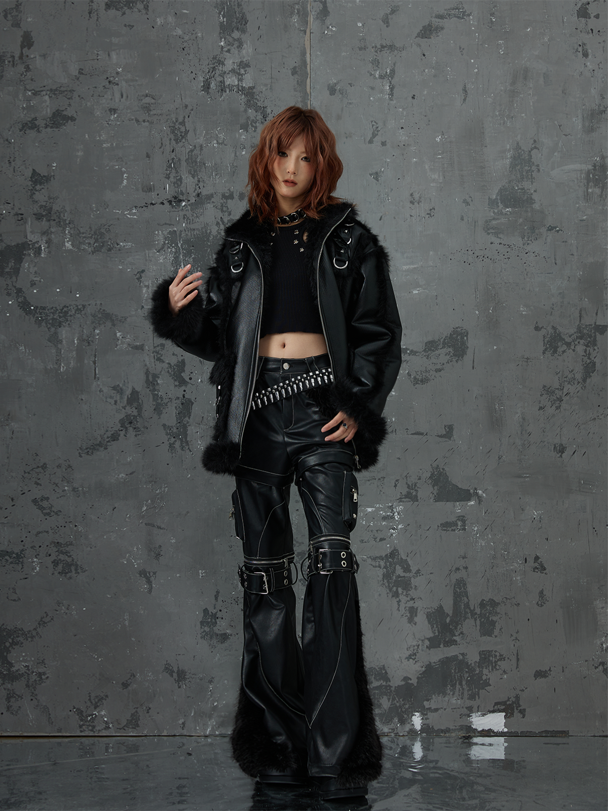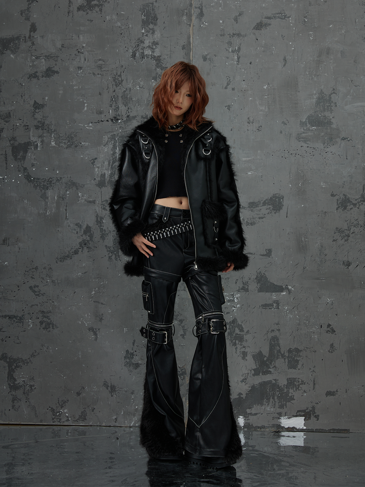 Punk Oversize Metal-Accent Shearling Jacket NA8147