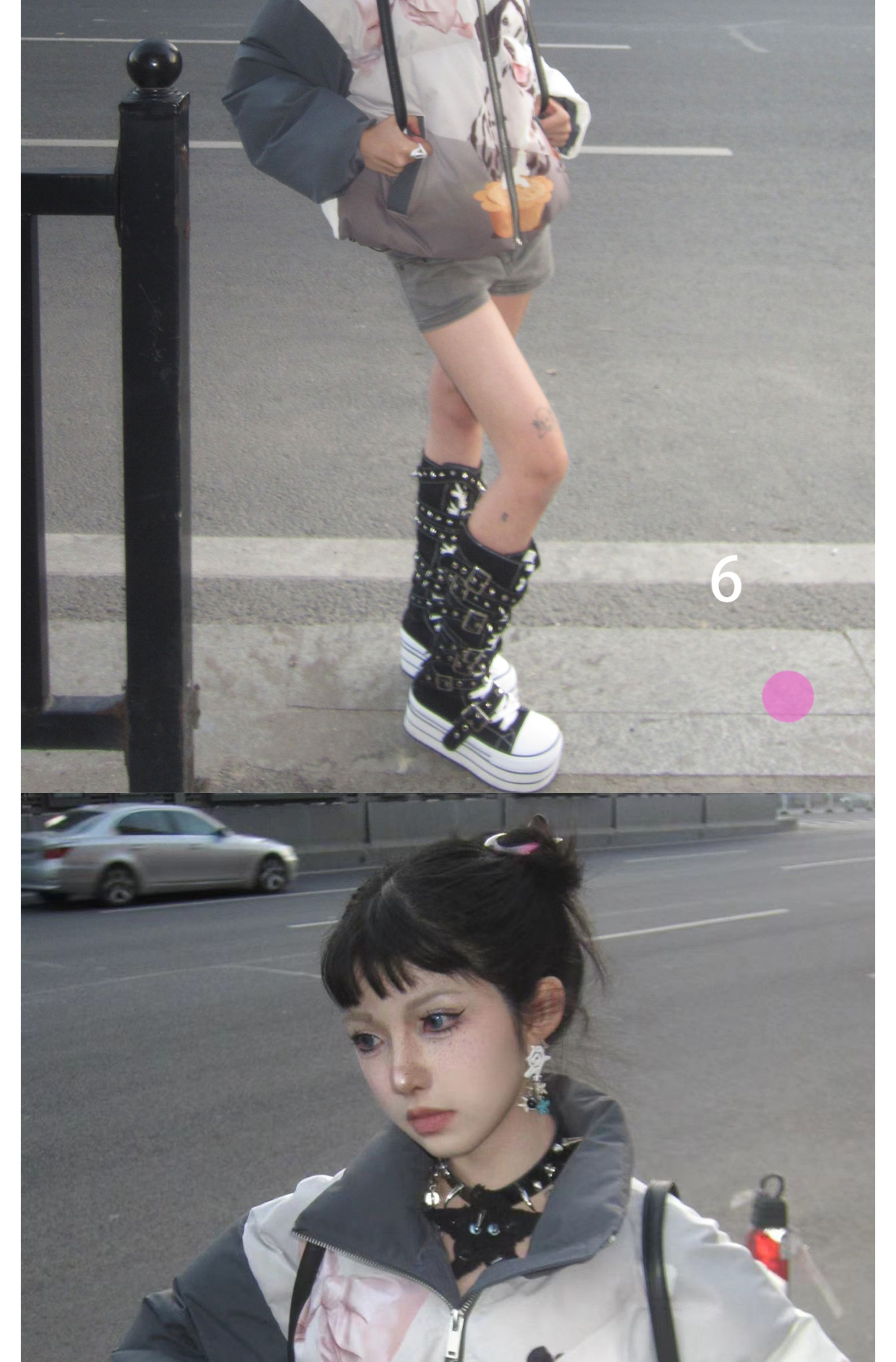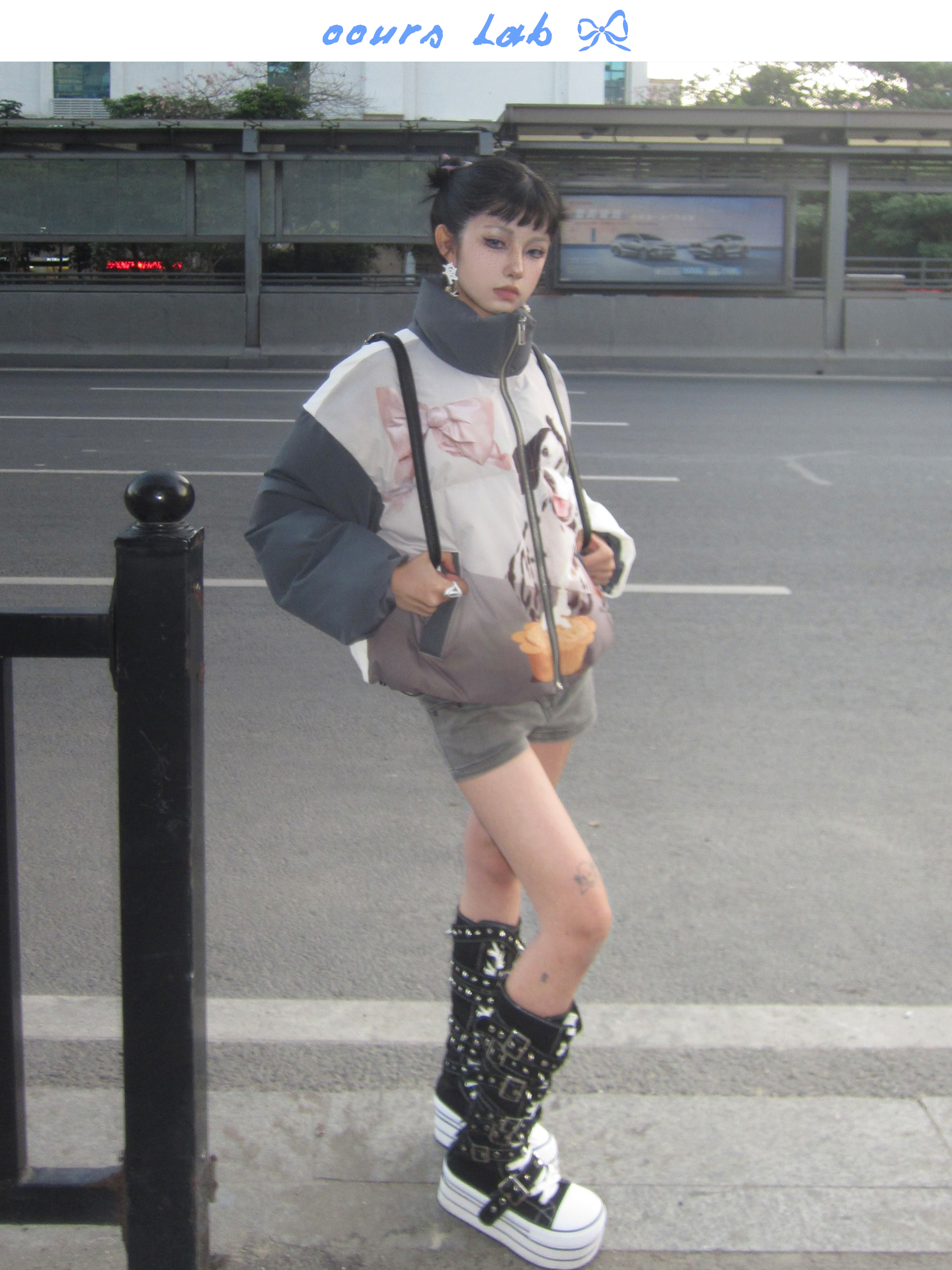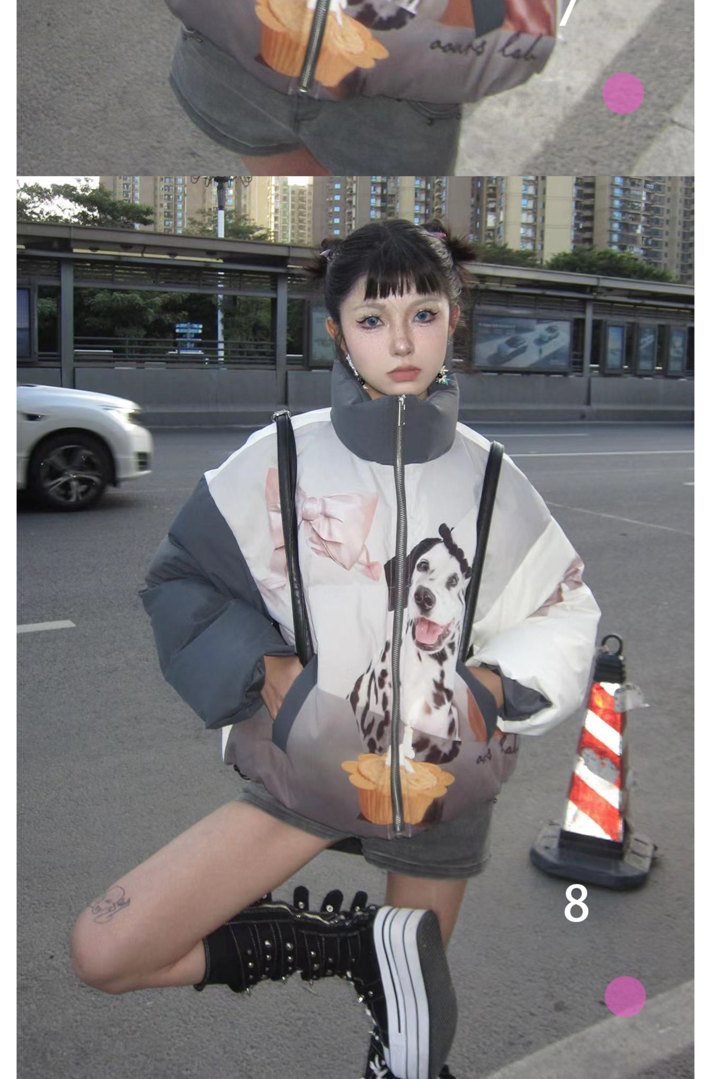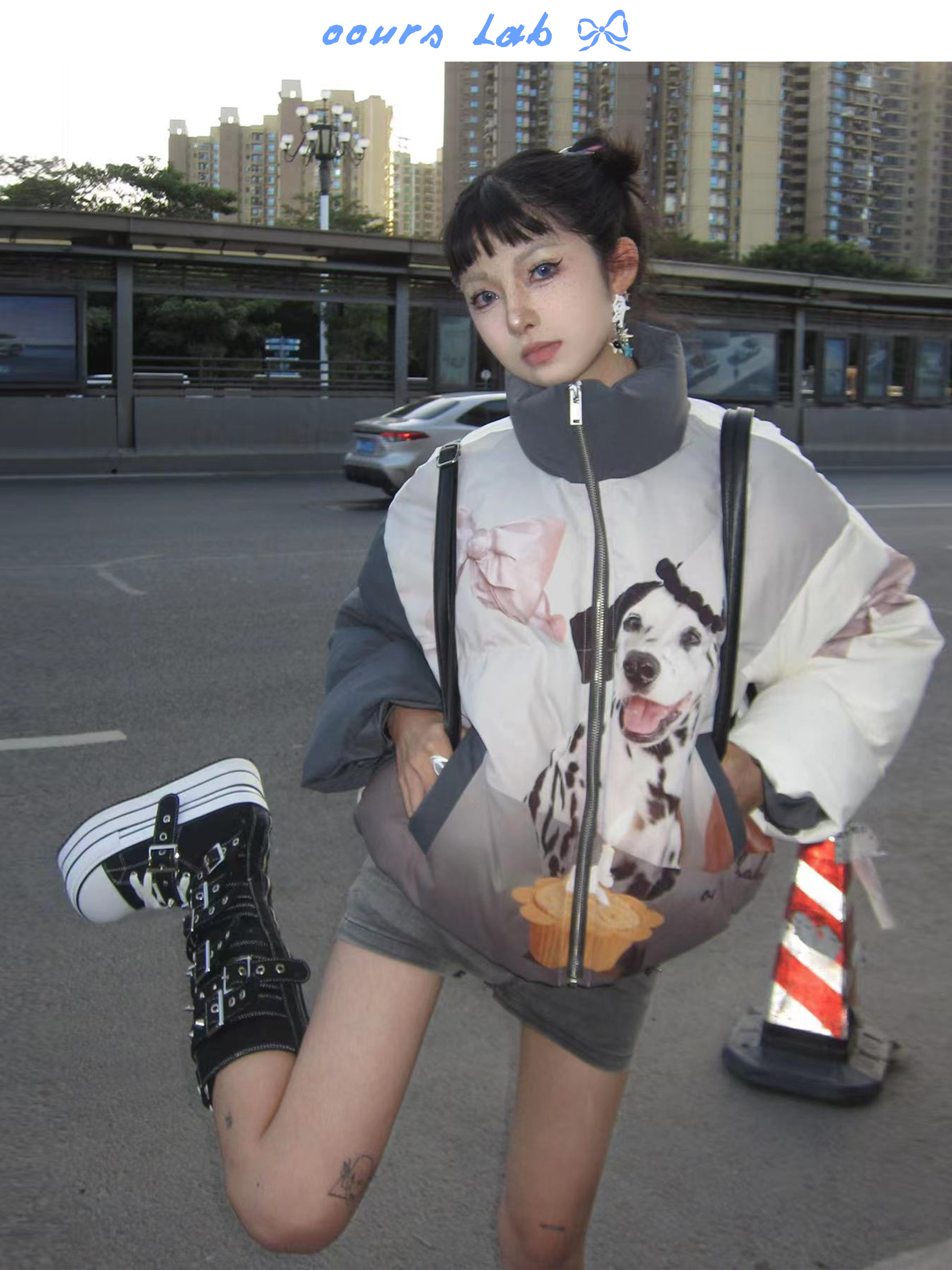 High-Neck Dalmatian Print Puffer Jacket NA8215