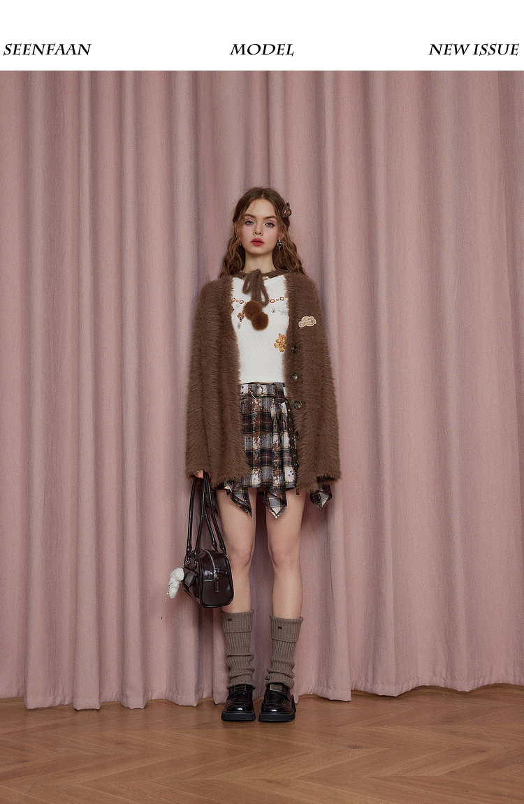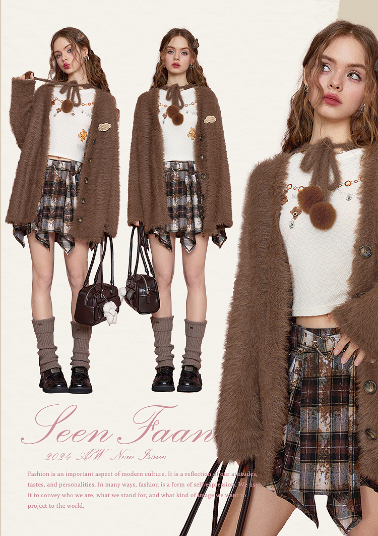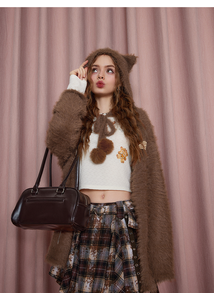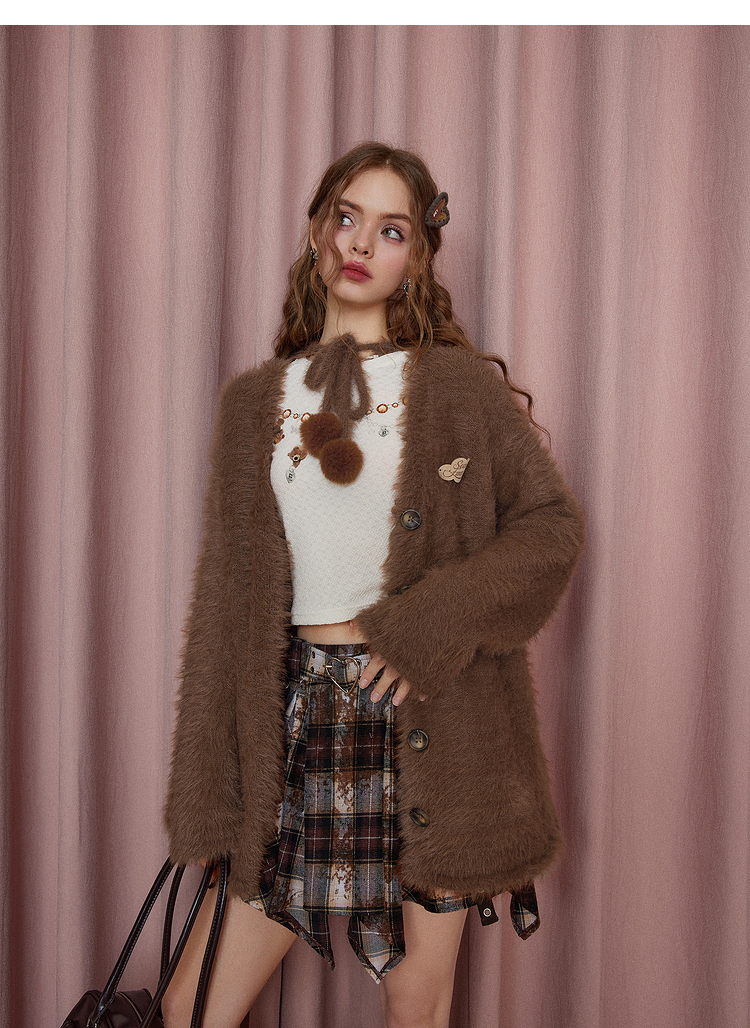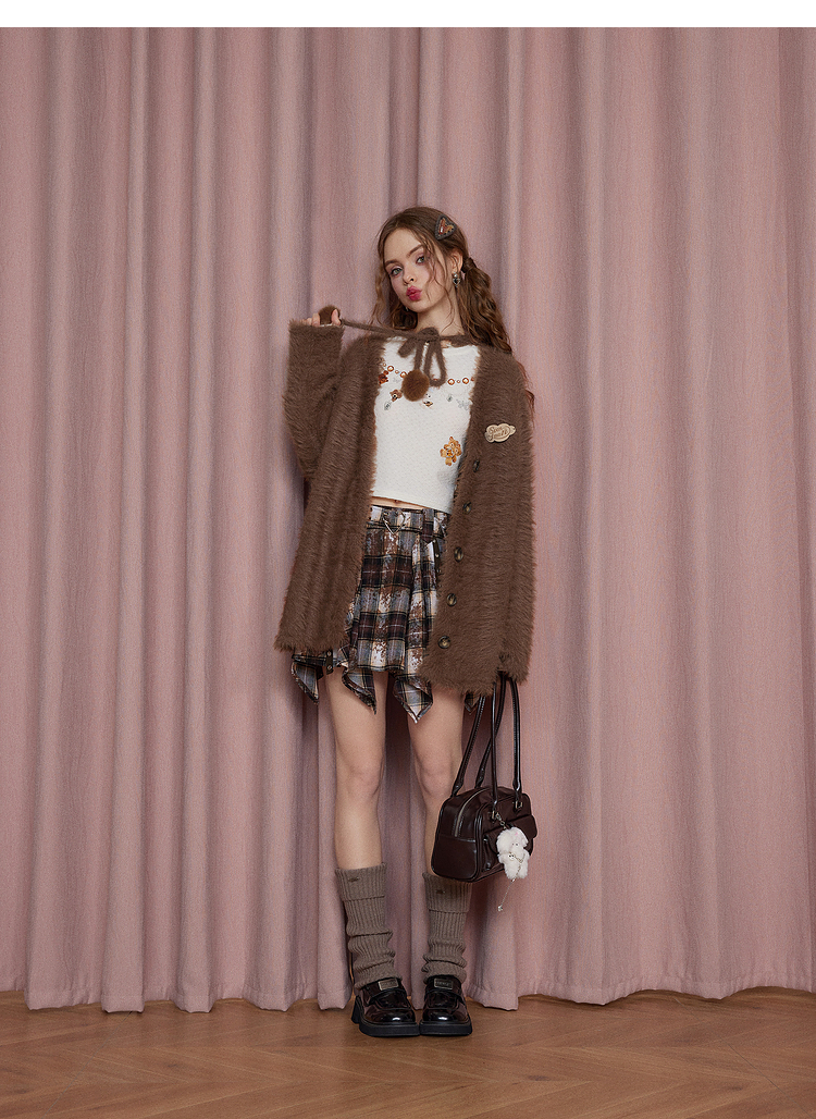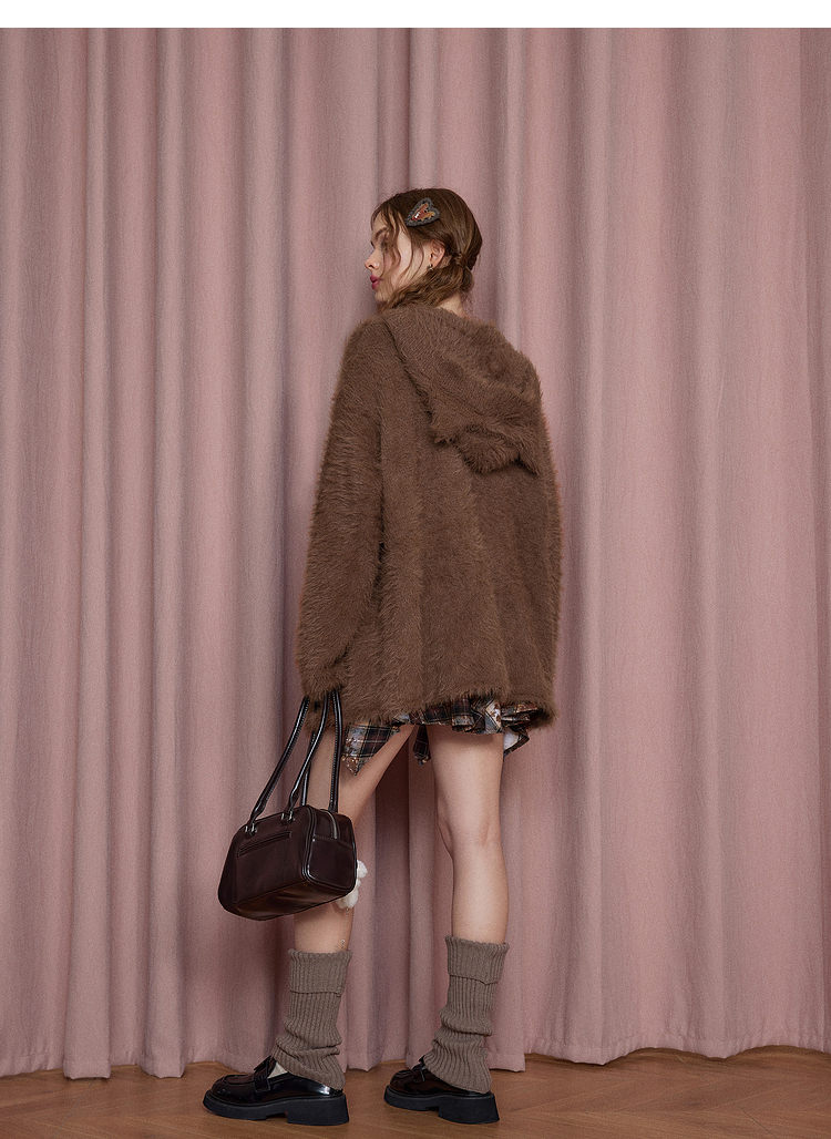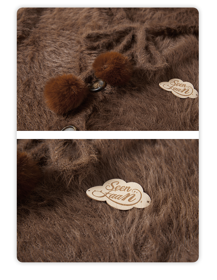 Detachable Hood Fake Fur Mid-Length Knit Cardigan NA6861