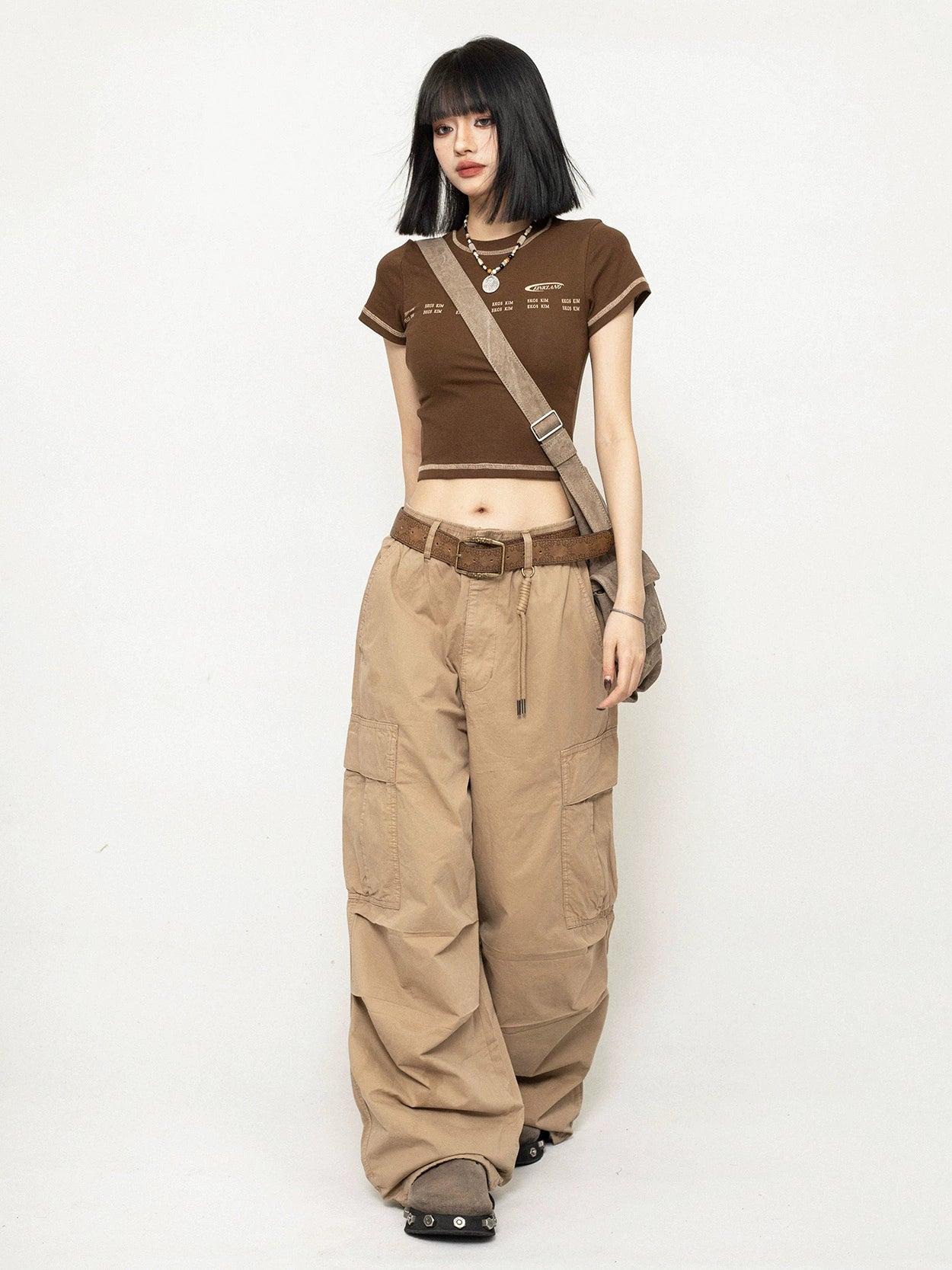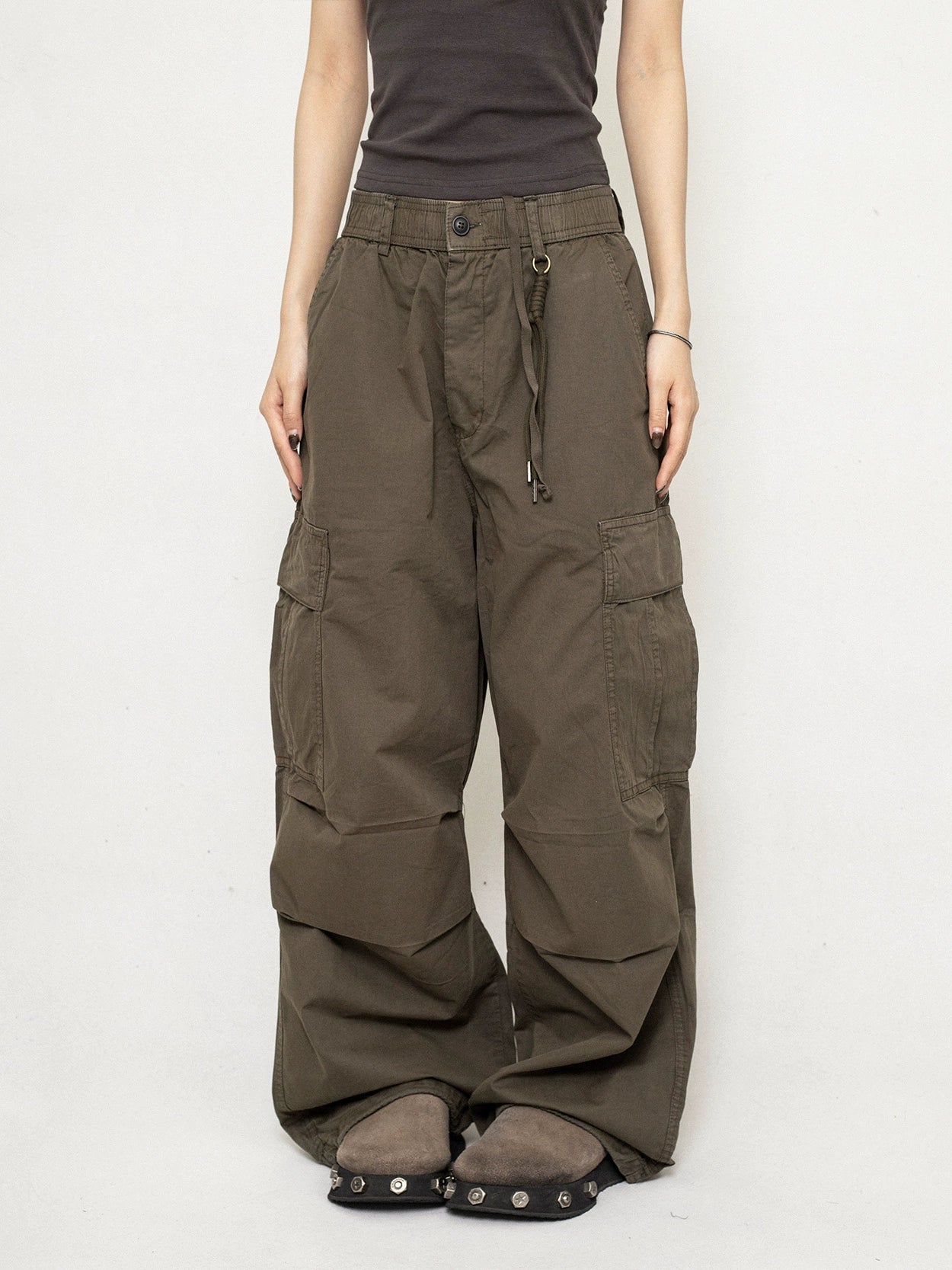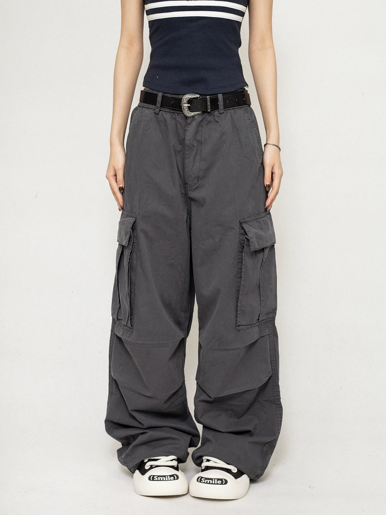 Wide-leg Multi Pocket Cargo Pants NA2591