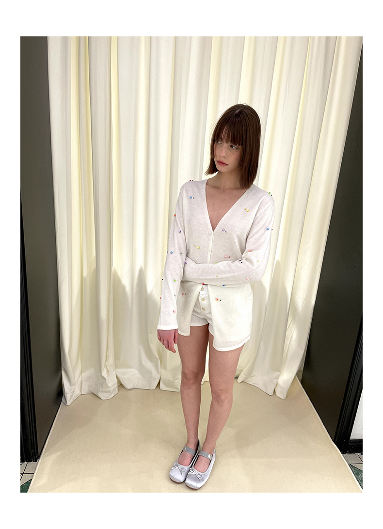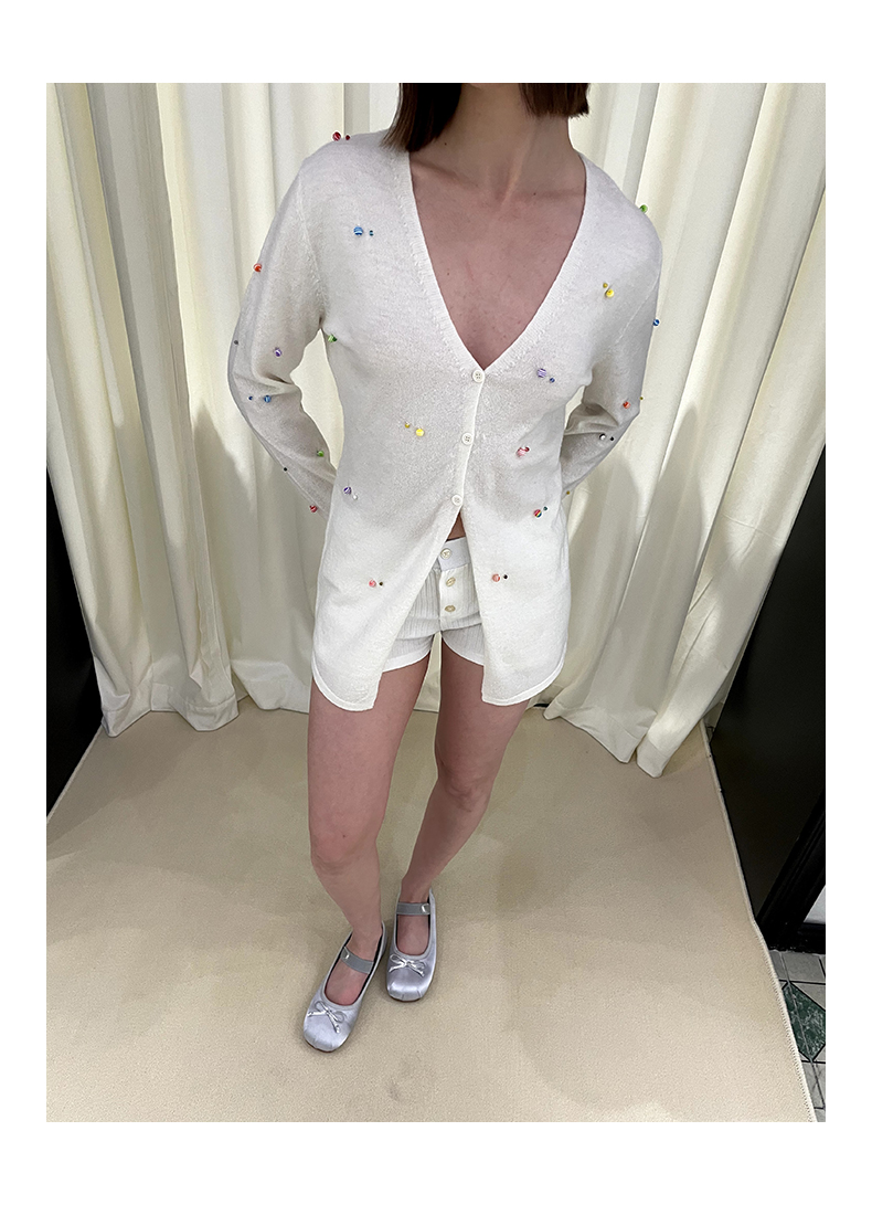 Sheer Hand-stitched Beads Knit Cardigan NA5979