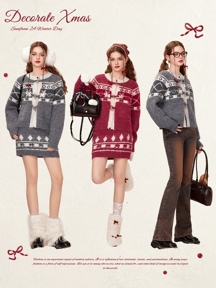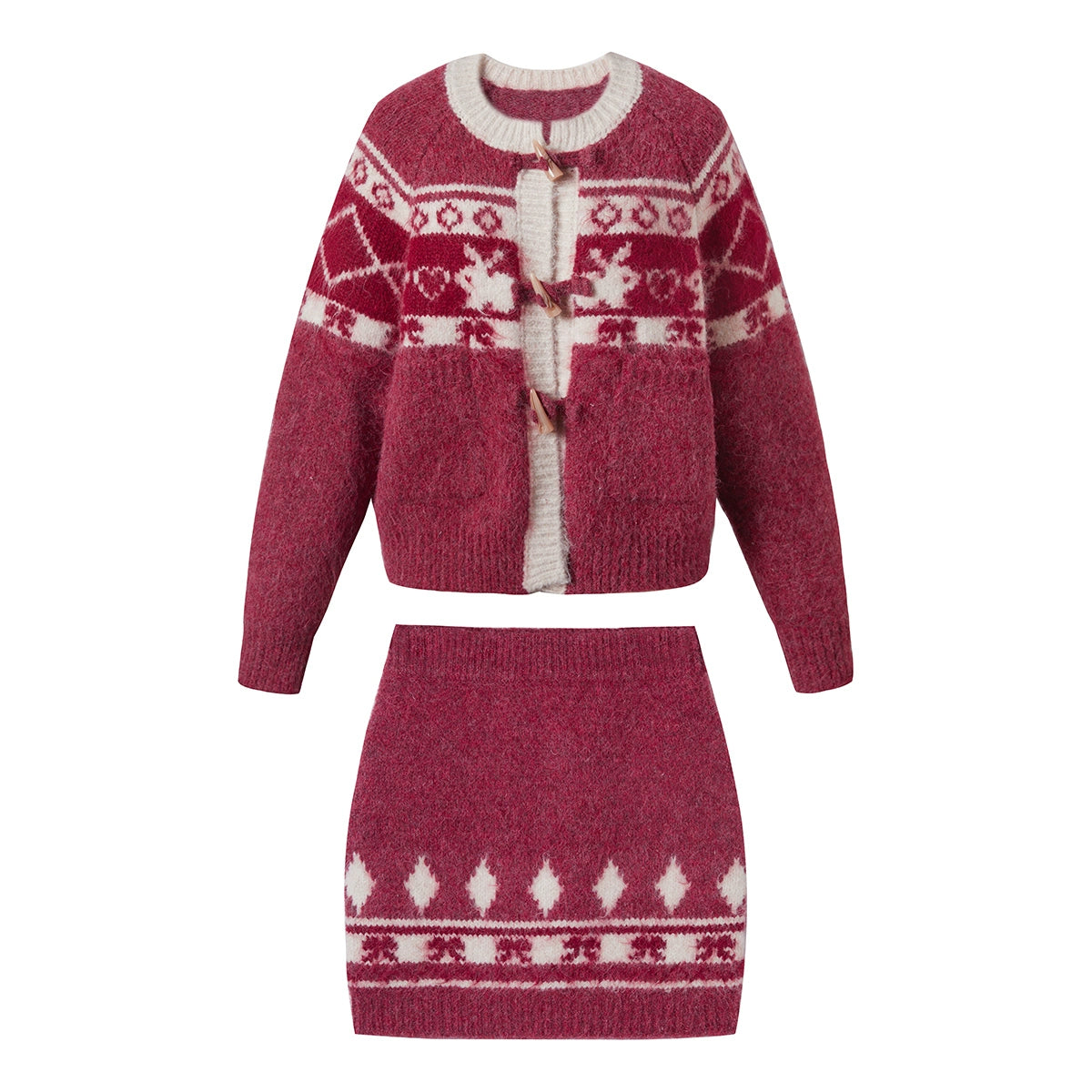 Jacquard Knit Sweater & Short Skirt Setup NA6946