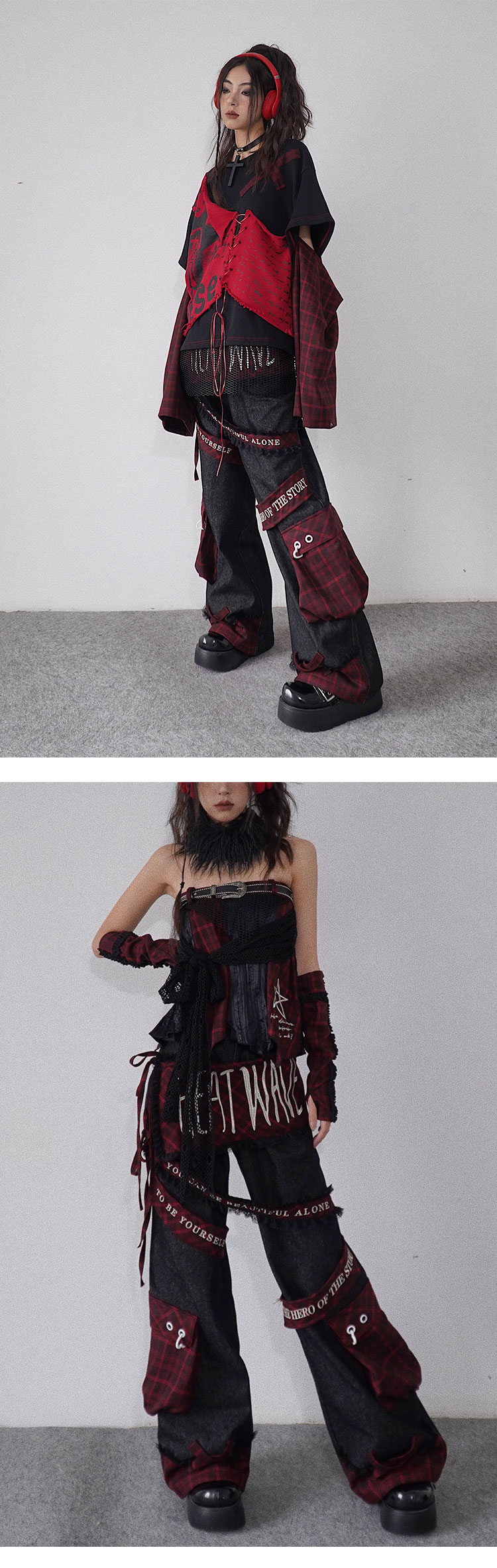 Embroidery Patchwork Multi-Pocket Cargo Pants NA7748