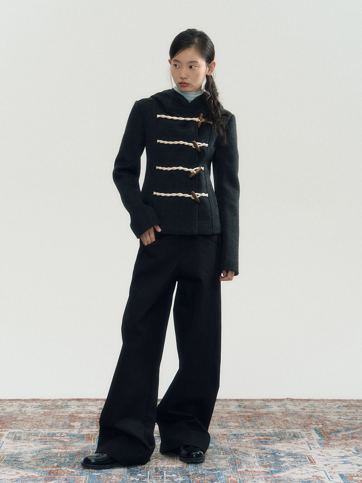Wool Blend Hooded Short Duffle Jacket NA7026