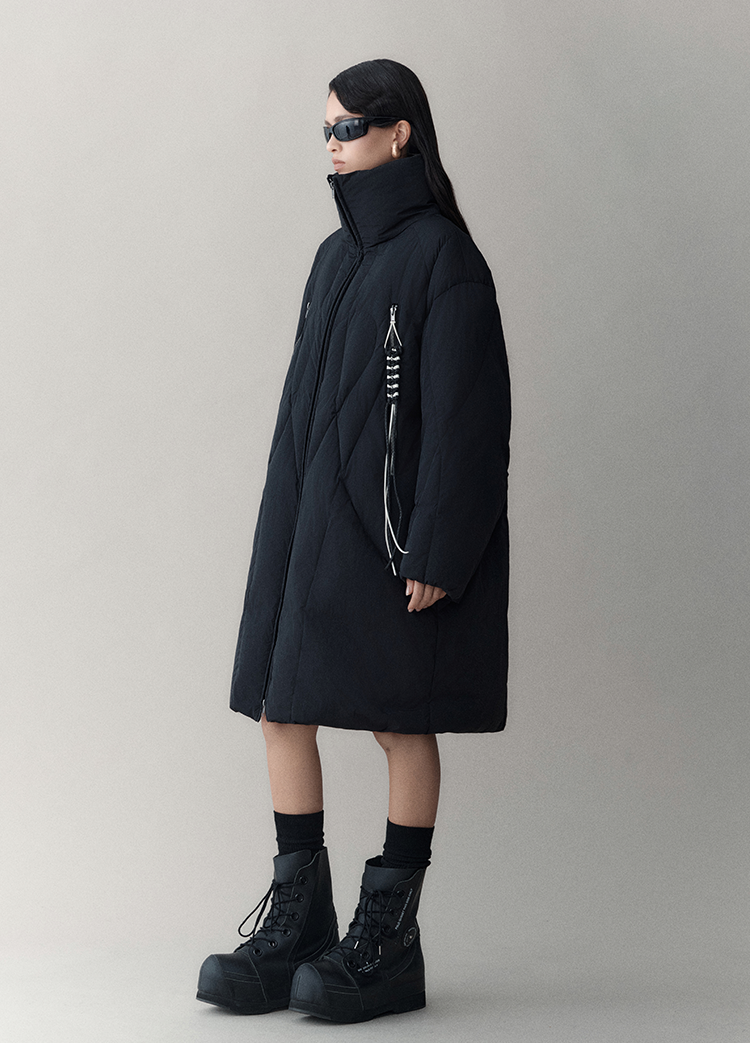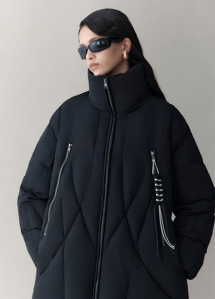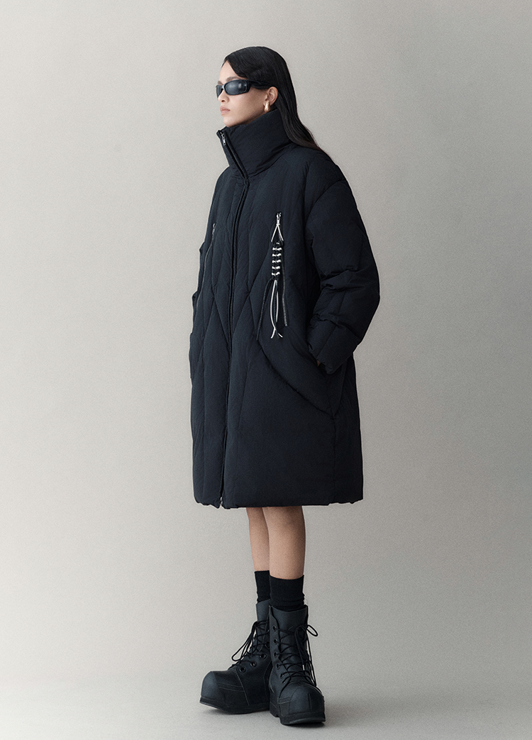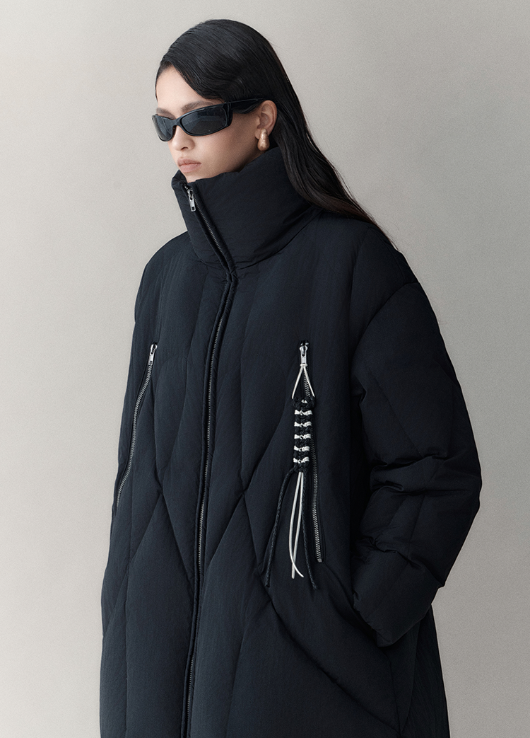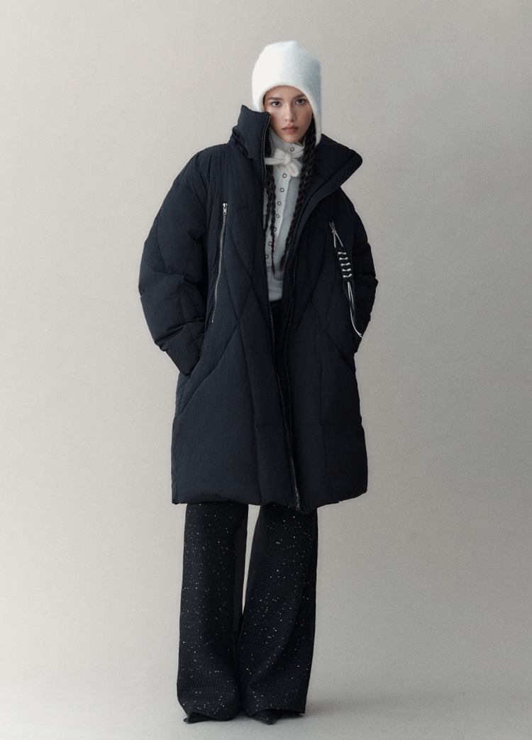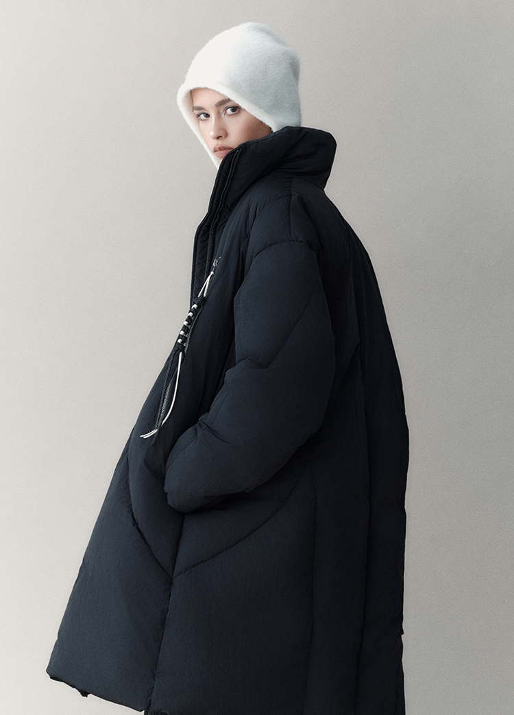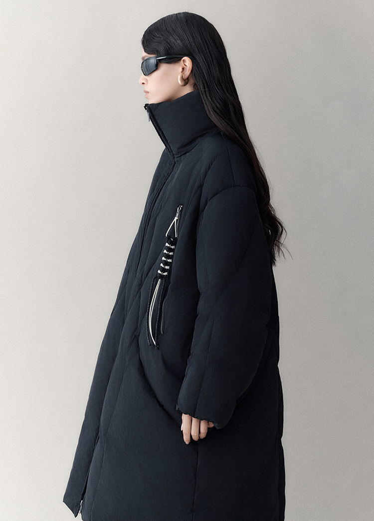 Handmade Knot High-Neck White Duck Down Coat NA8039