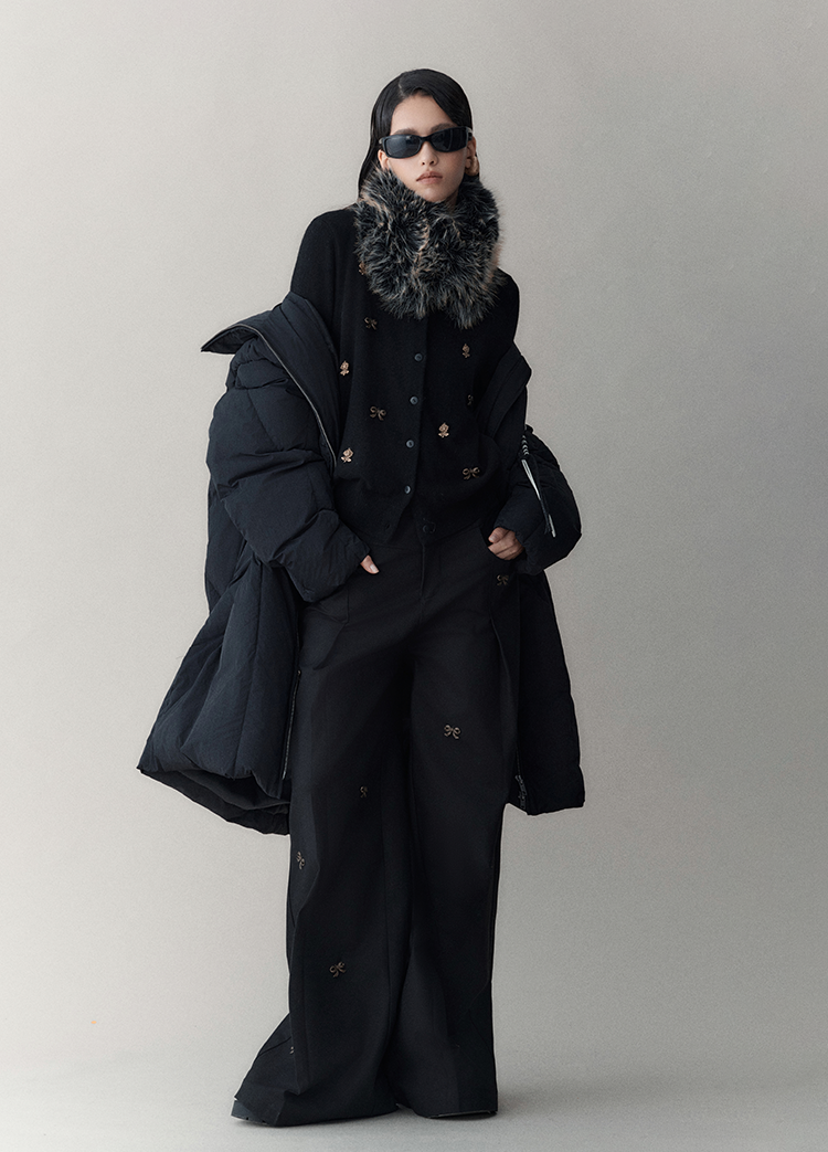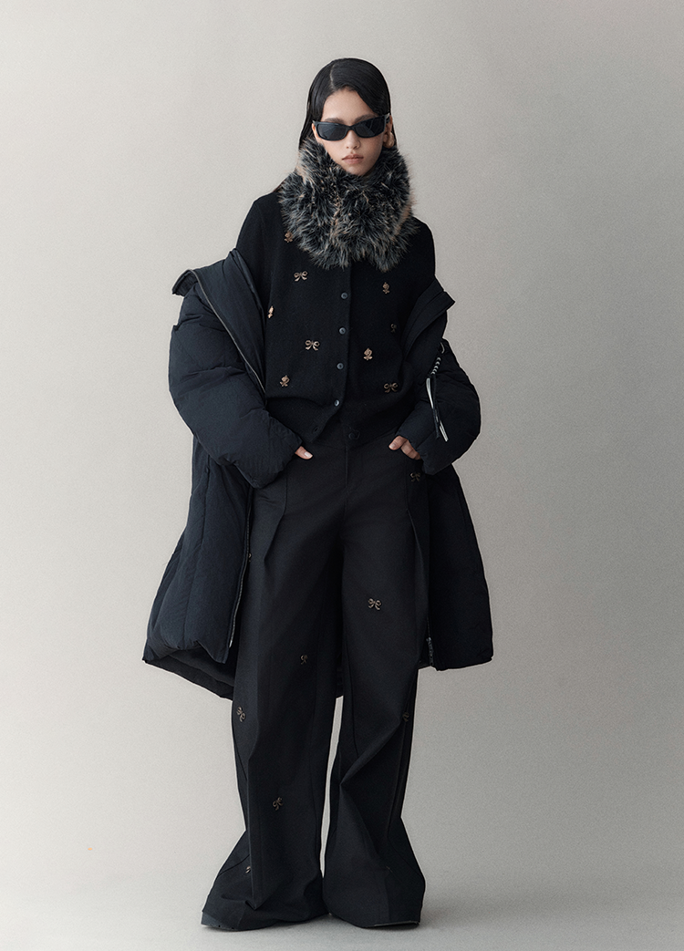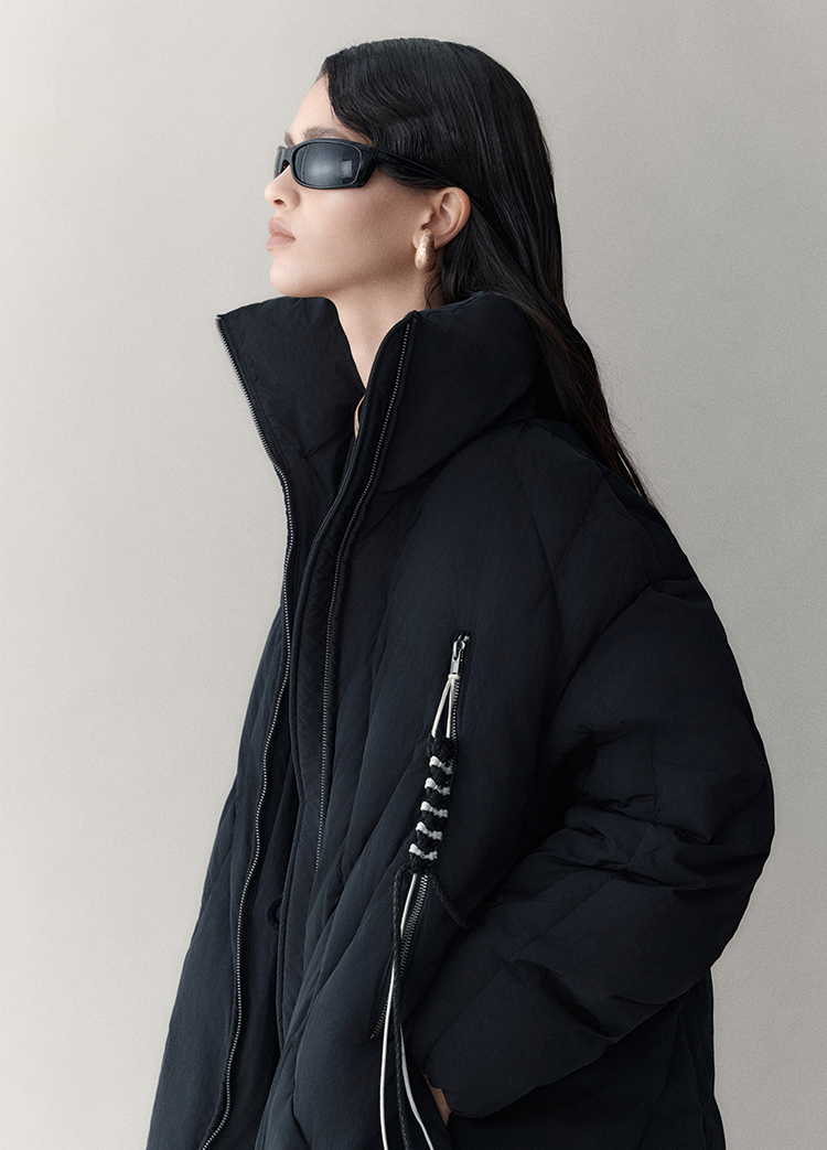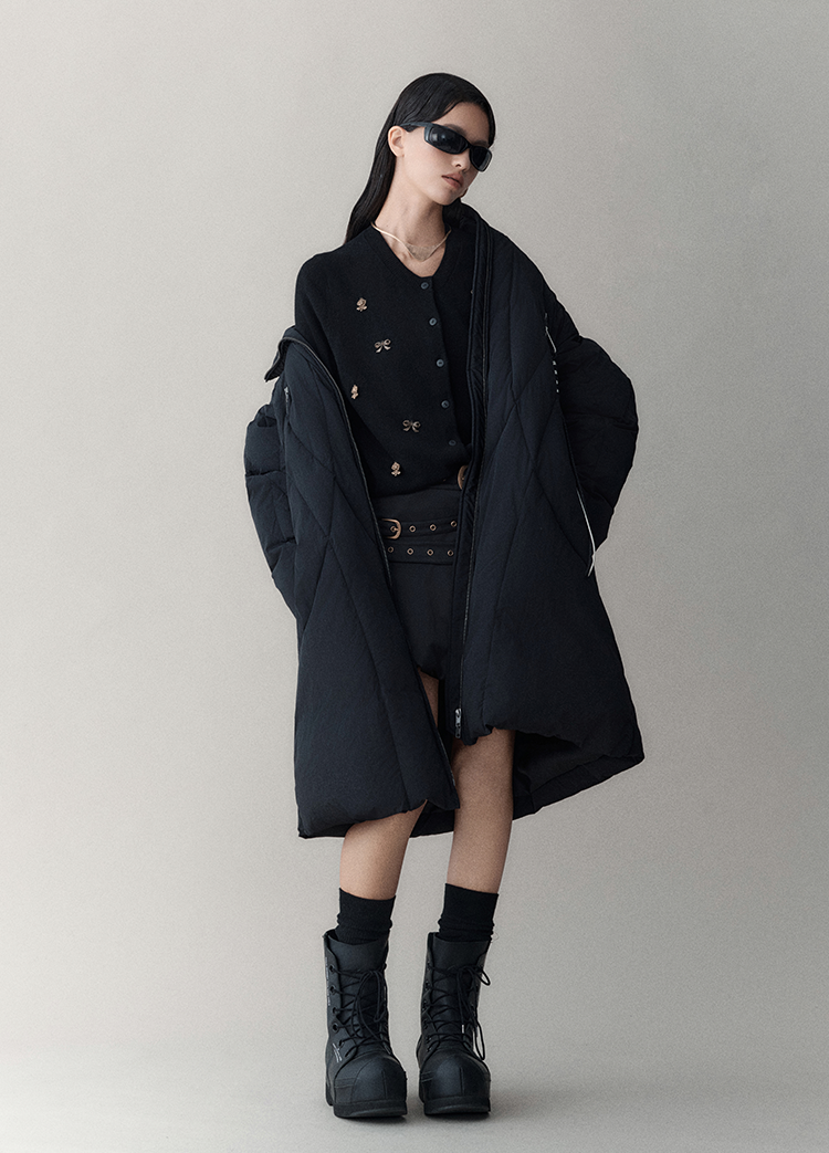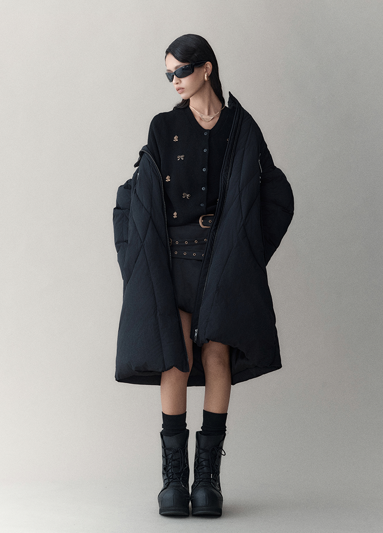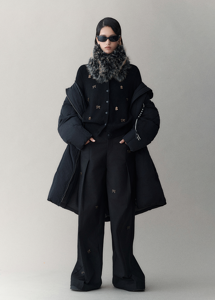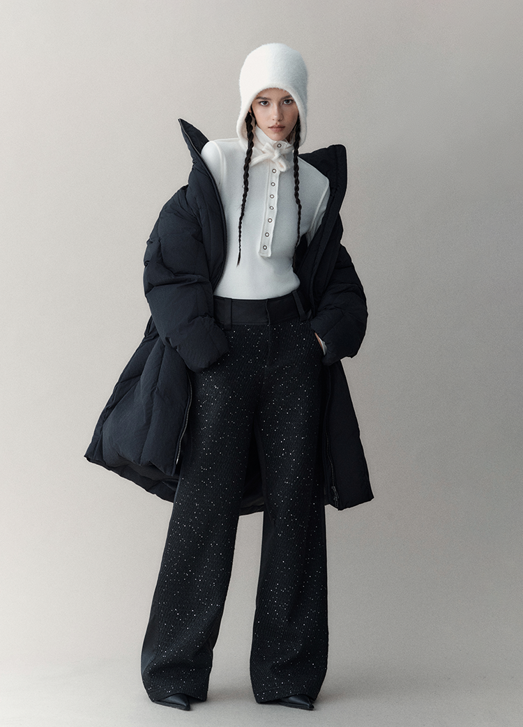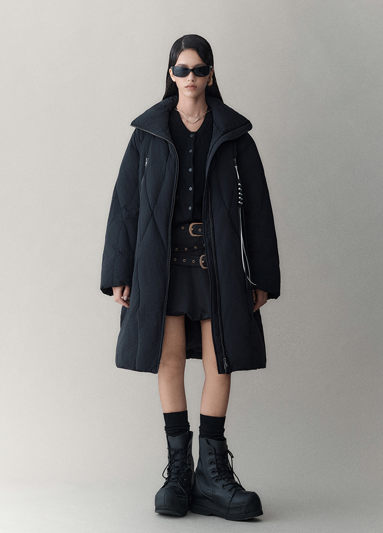 Handmade Knot High-Neck White Duck Down Coat NA8039