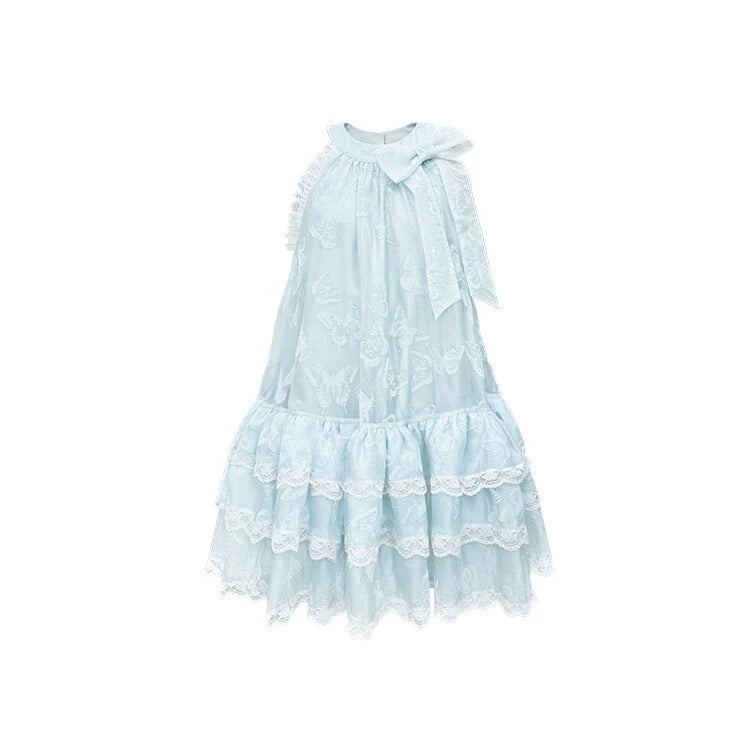 Butterfly Organza Lace-Trim Halter Sleeveless Dress NA7338