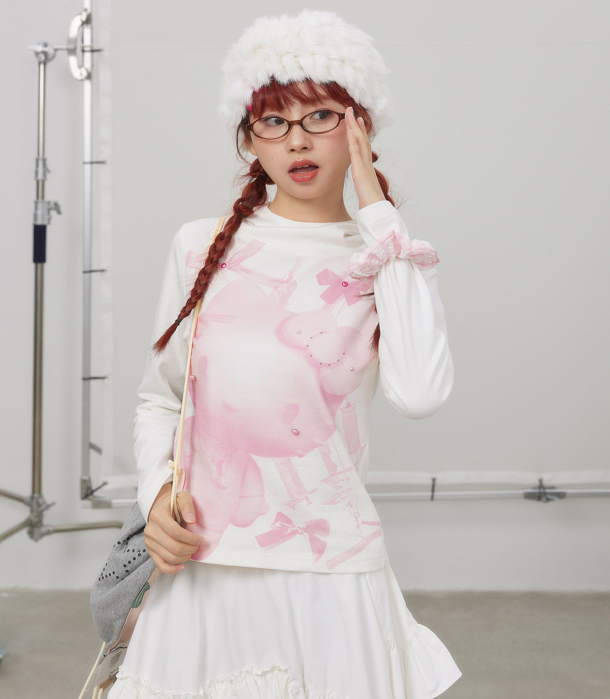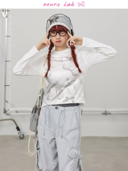 Cartoon Cat Rhinestone Print Hoodie NA8221