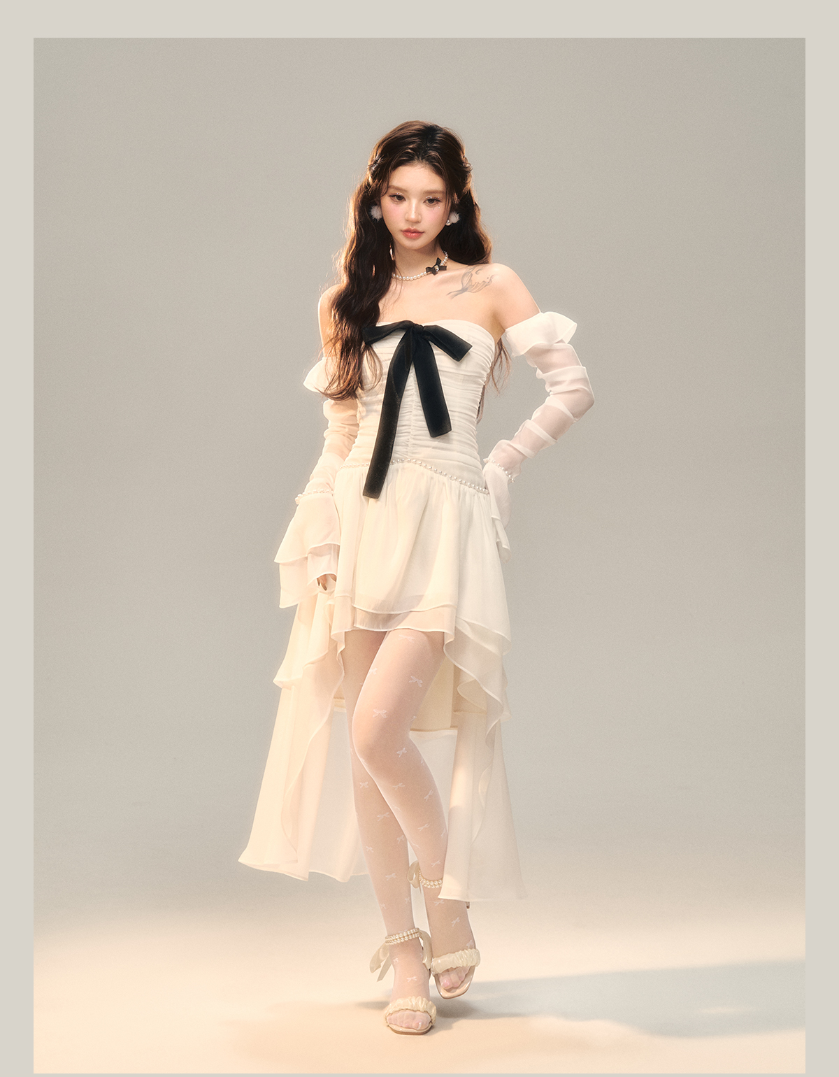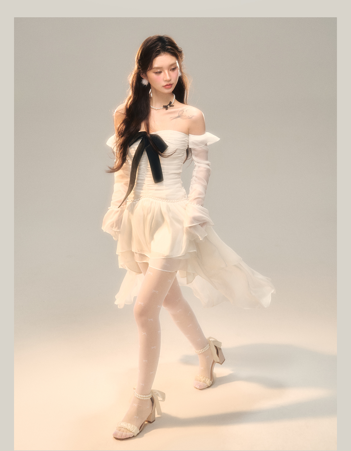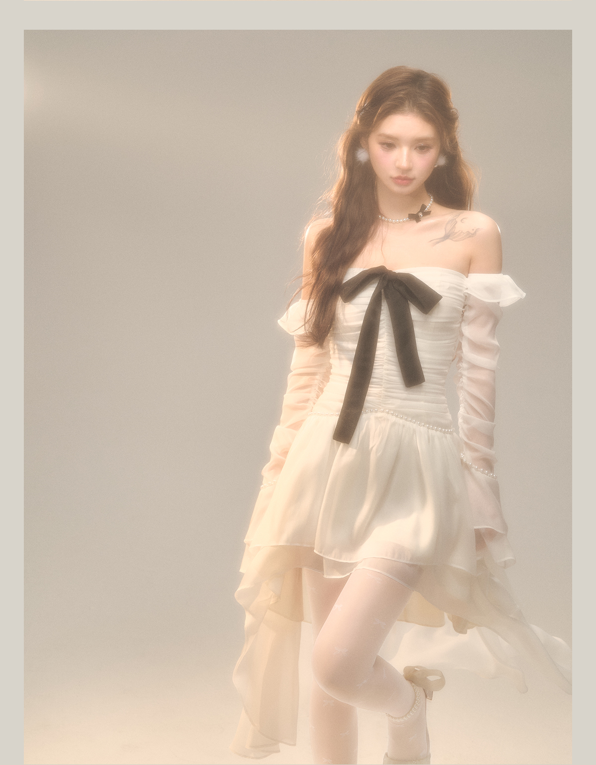 Off-Shoulder Bow Ruffle Short Dress & Arm Cover NA7471