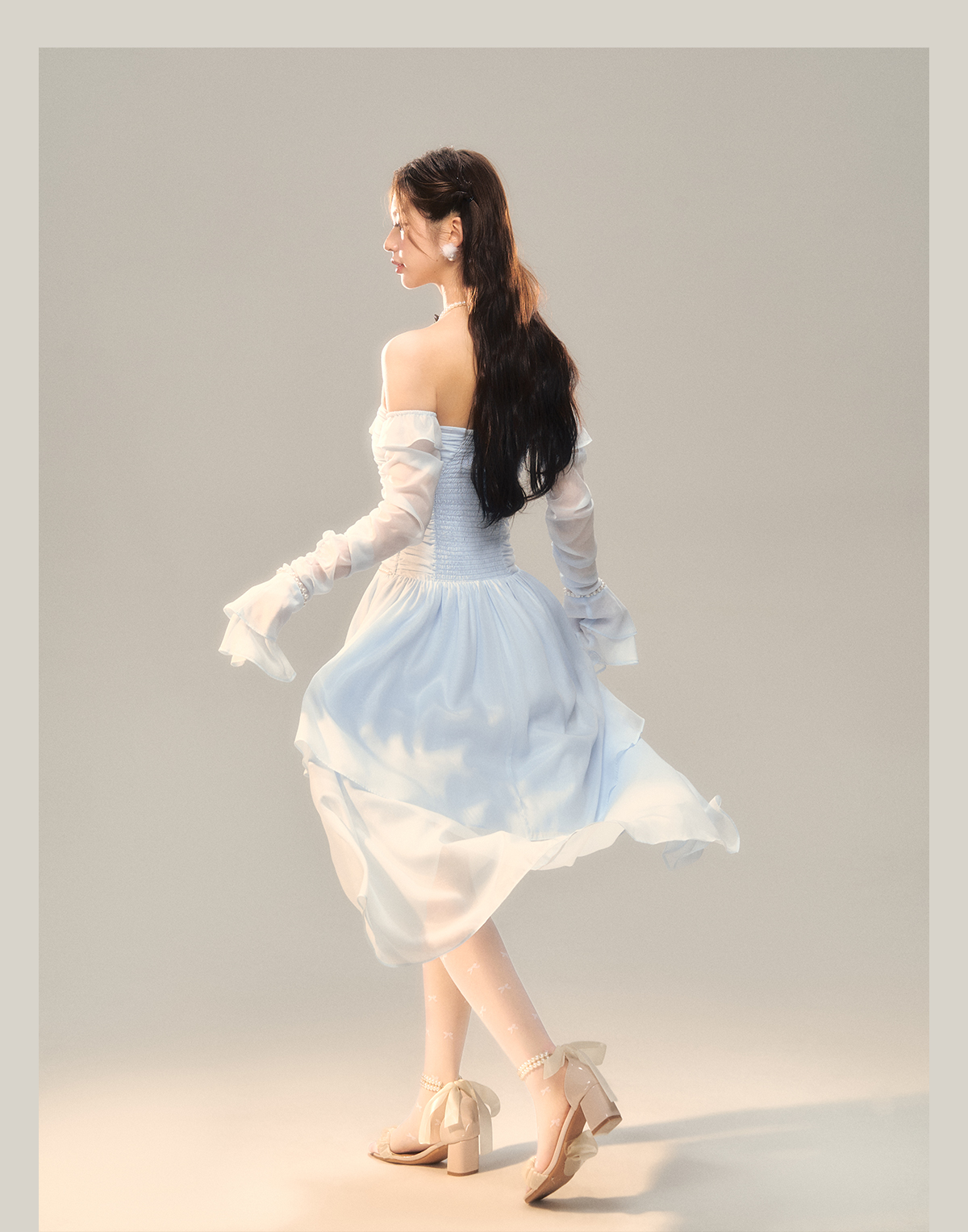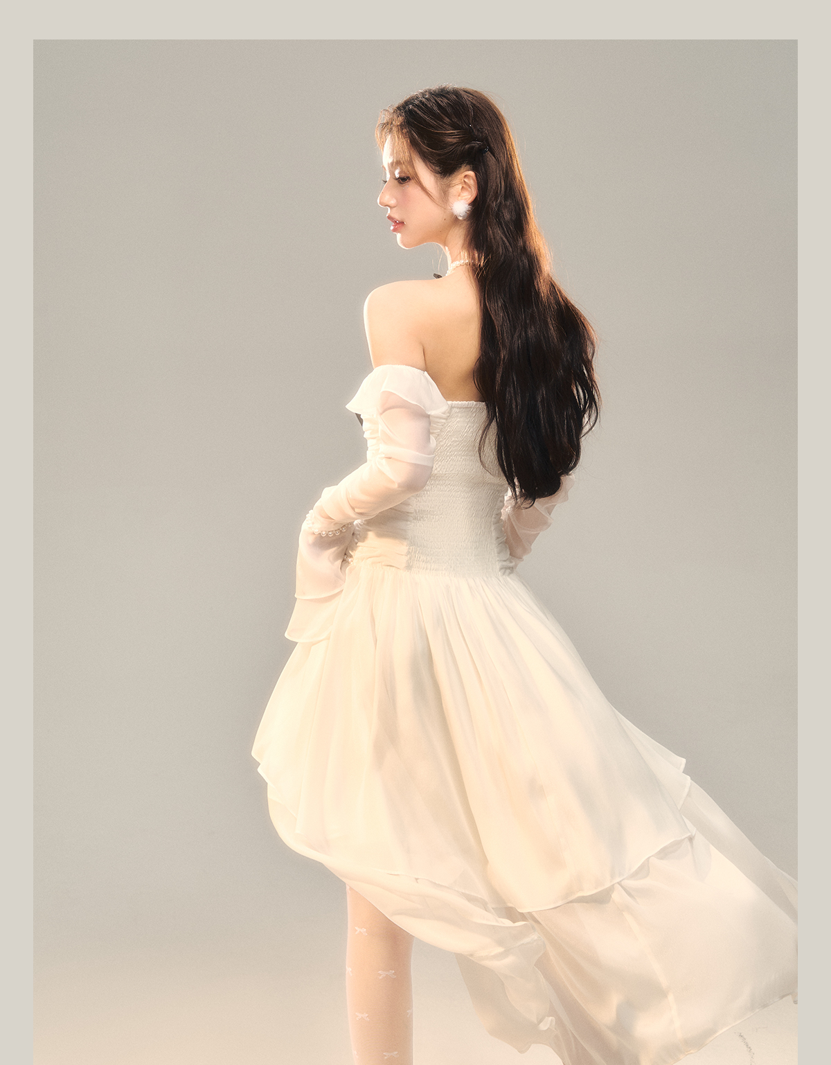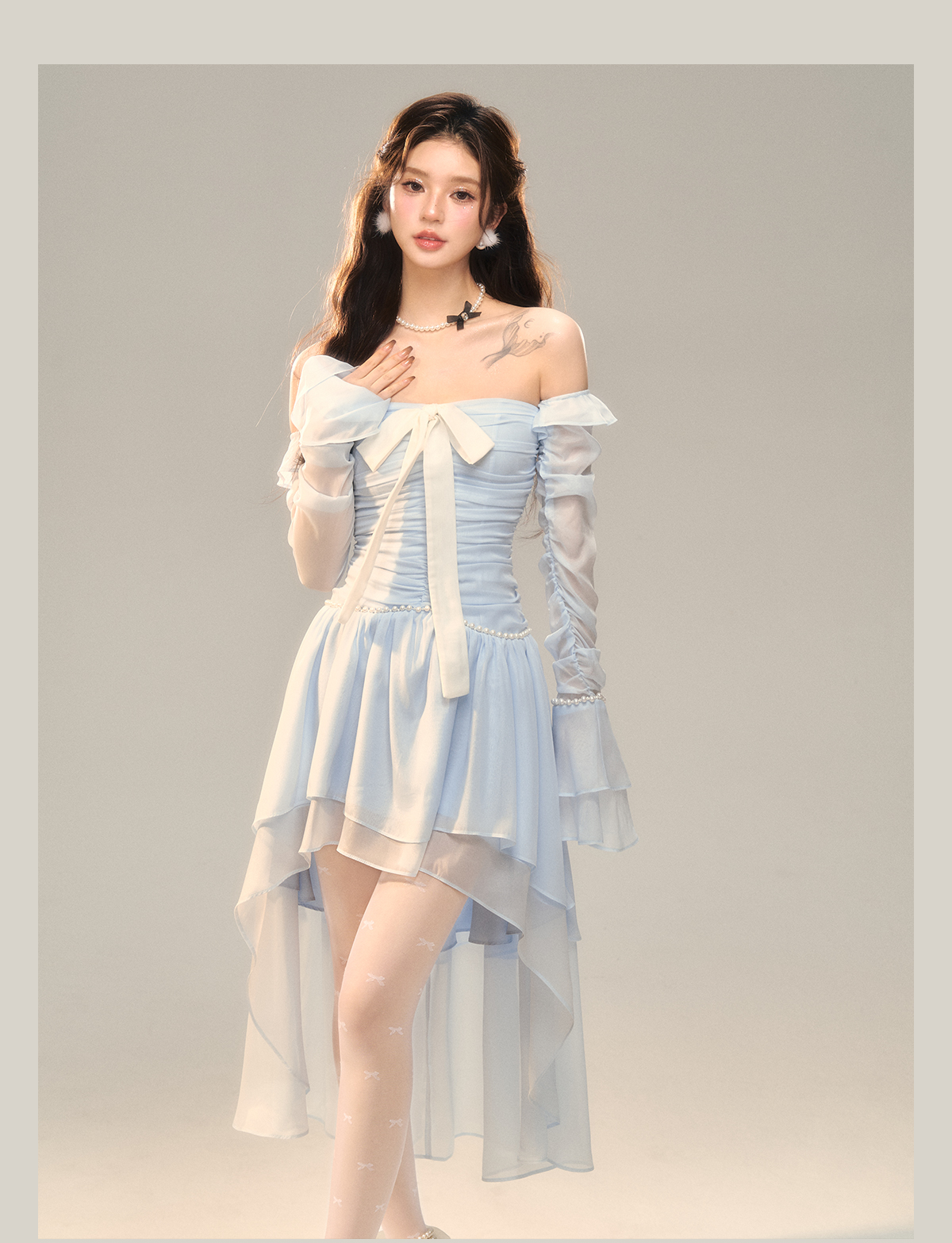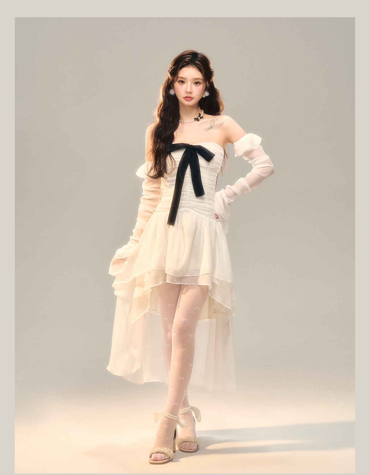 Off-Shoulder Bow Ruffle Short Dress & Arm Cover NA7471
