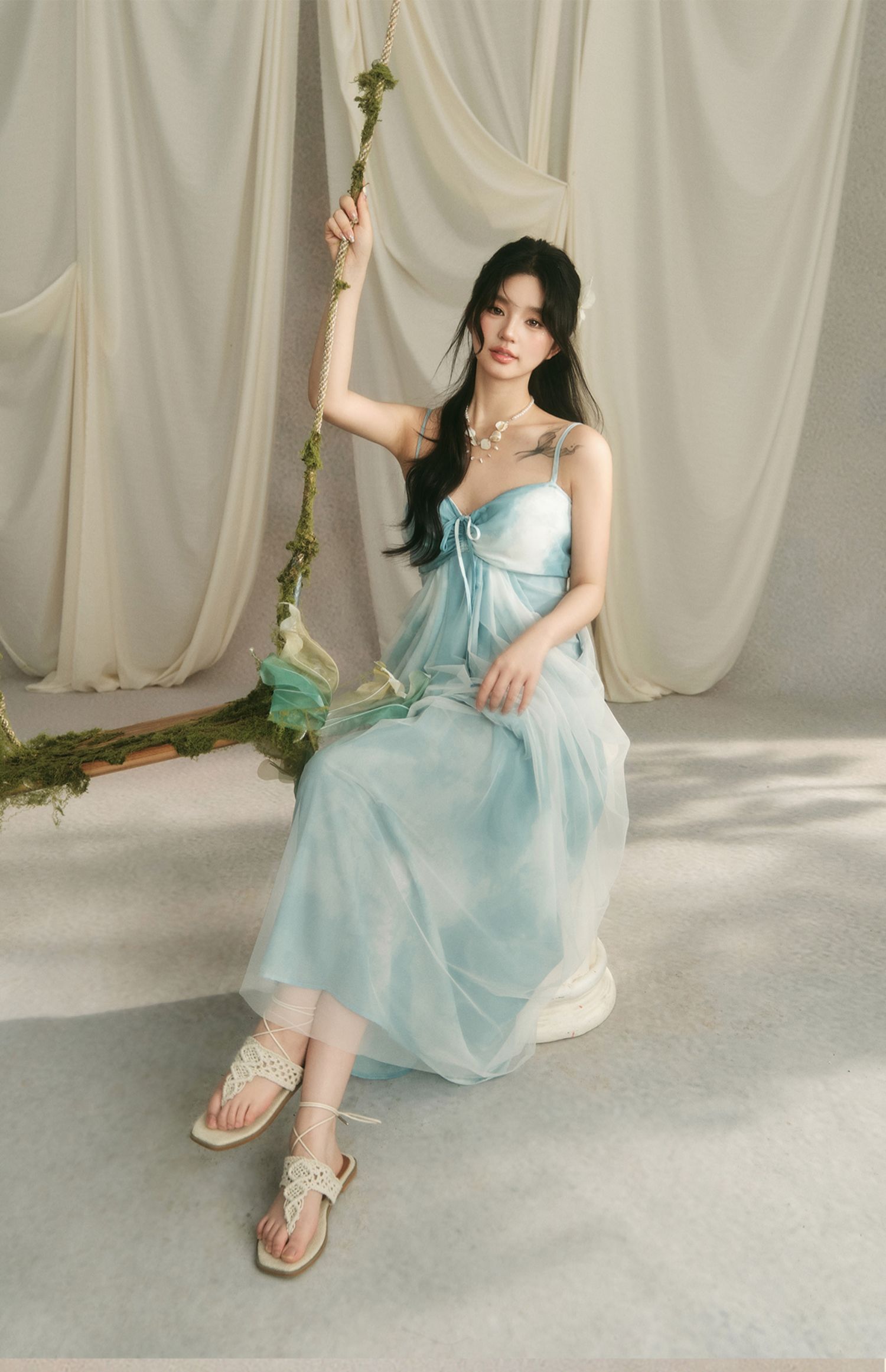 Drawstring Tie-Dye Camisole Long Dress NA7516