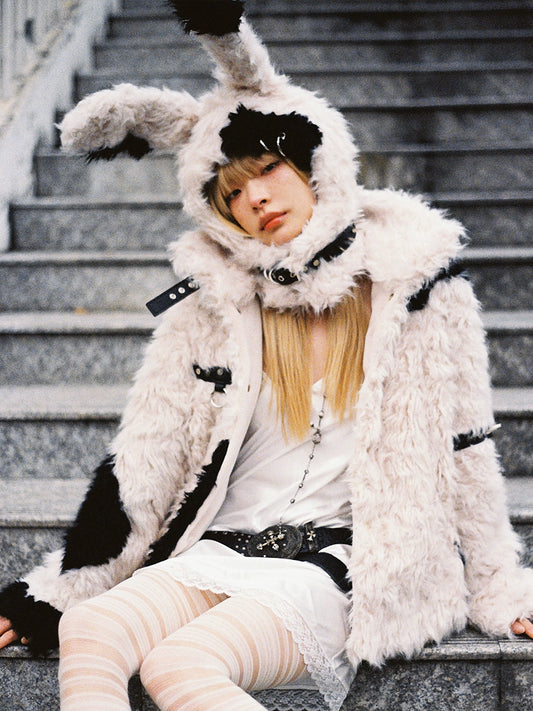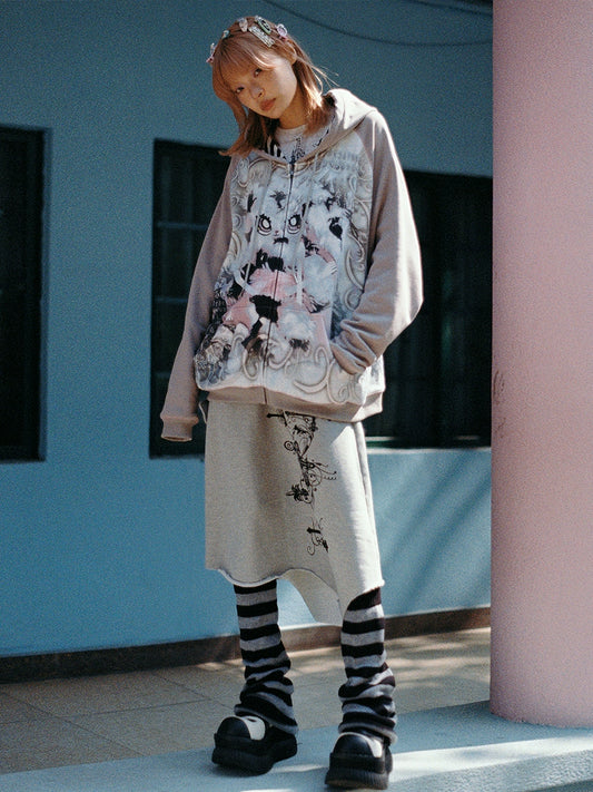 Rabbit Print Oversize Zipper Hoodie NA6608