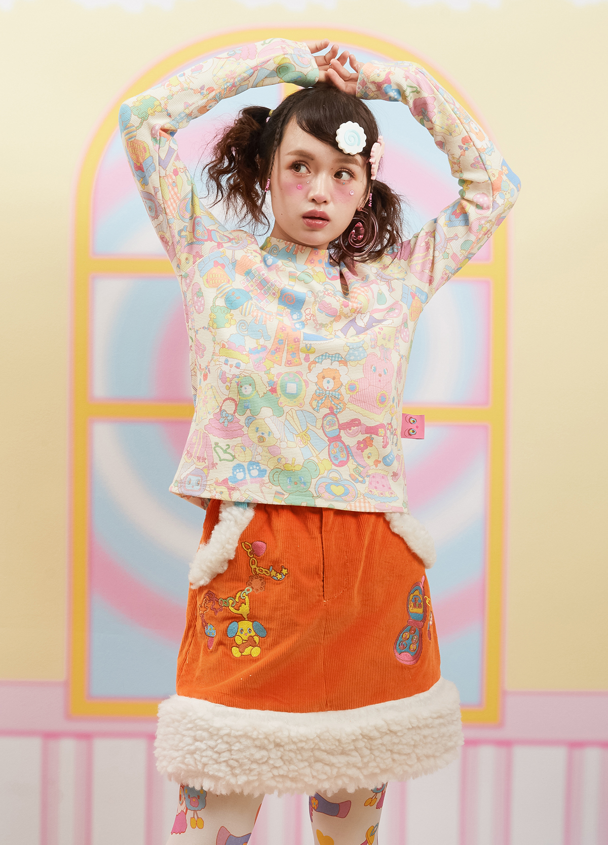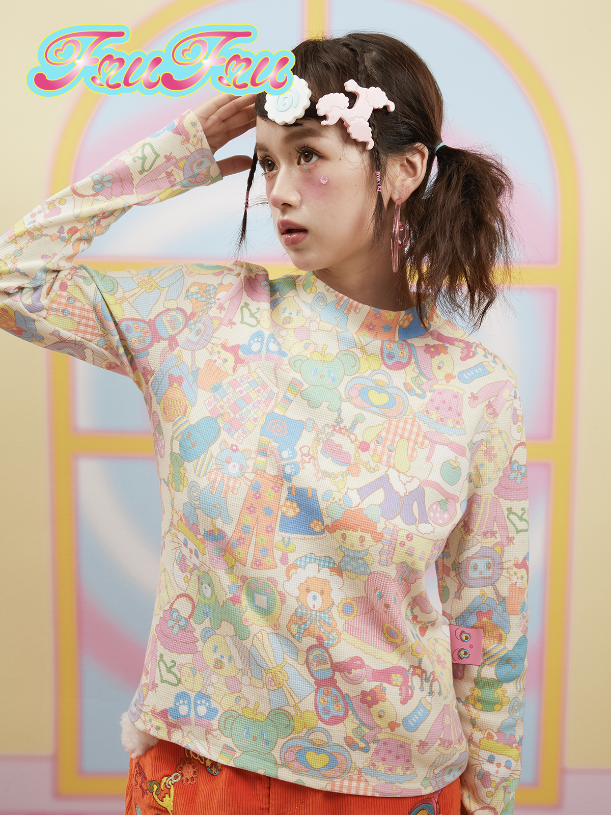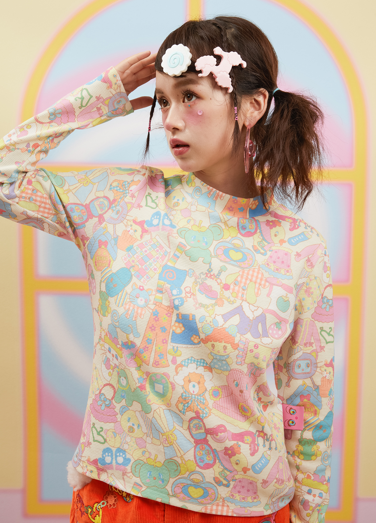 Waffle Cartoon Print Long Sleeve T-Shirt NA6549