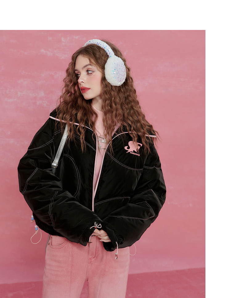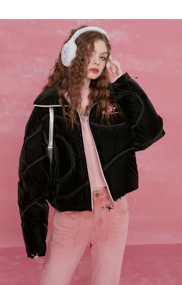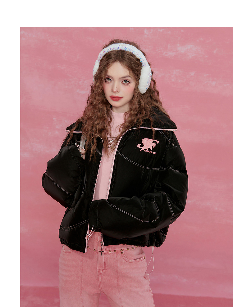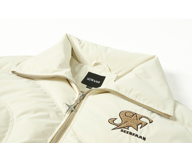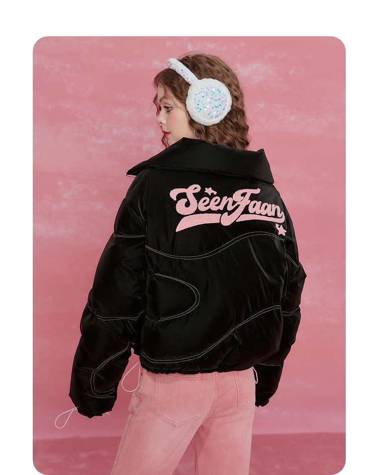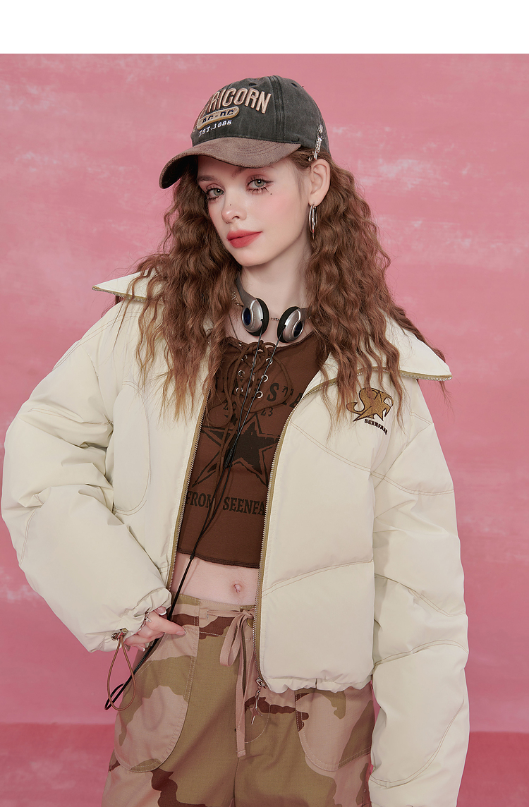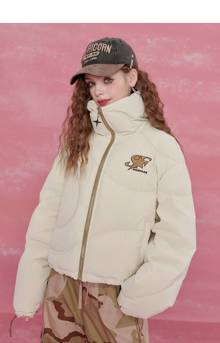 Letter Print High-Neck Short White Duck Down Jacket NA6817