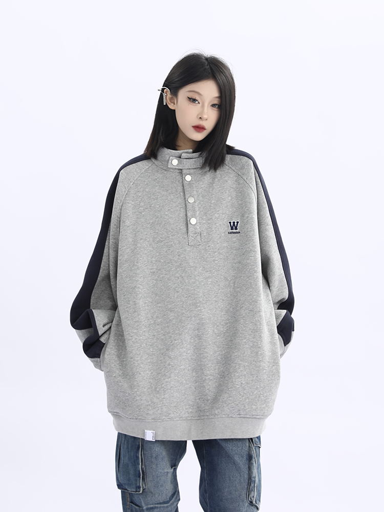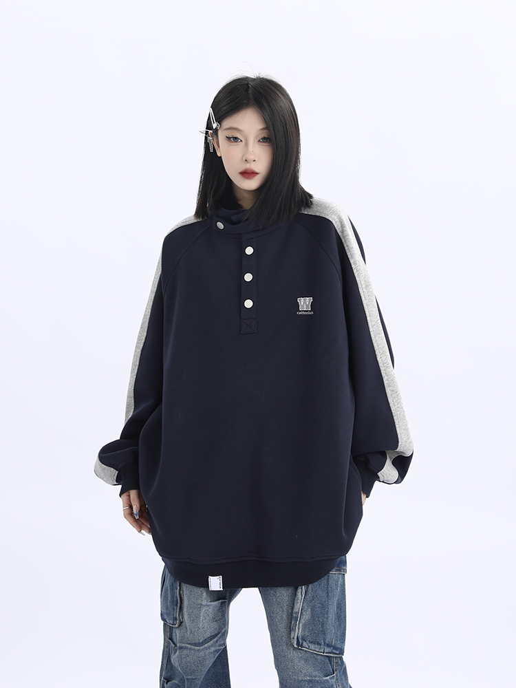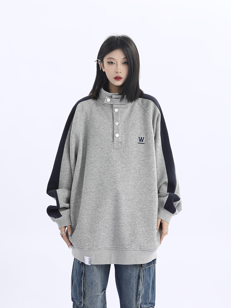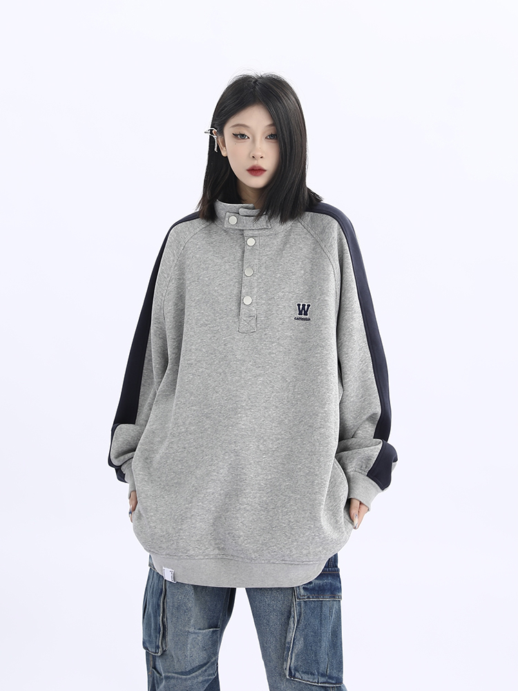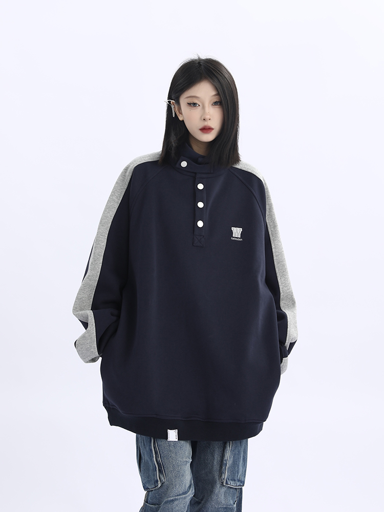 Retro Design Standing-collar Pullover Sweatshirt NA1736