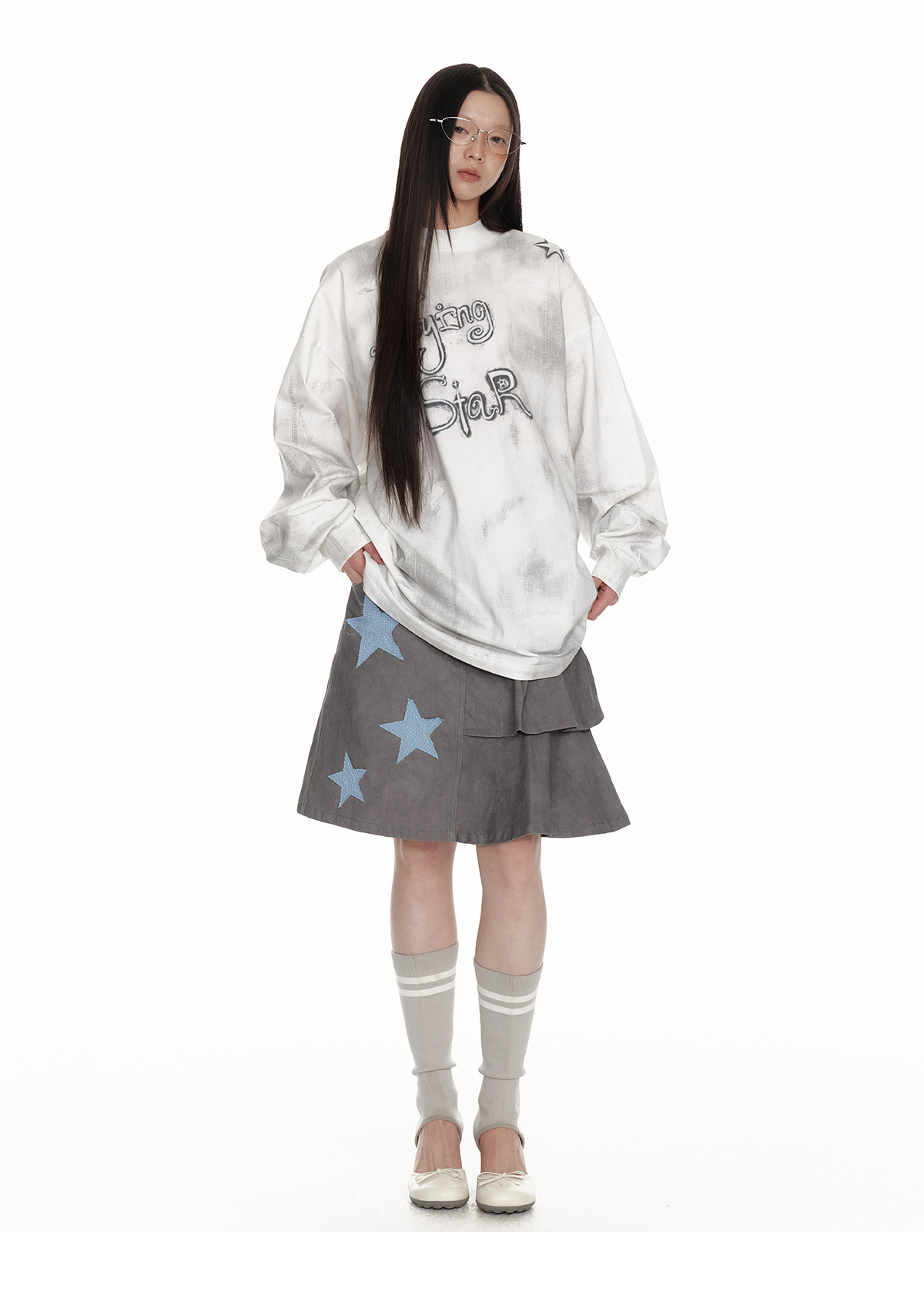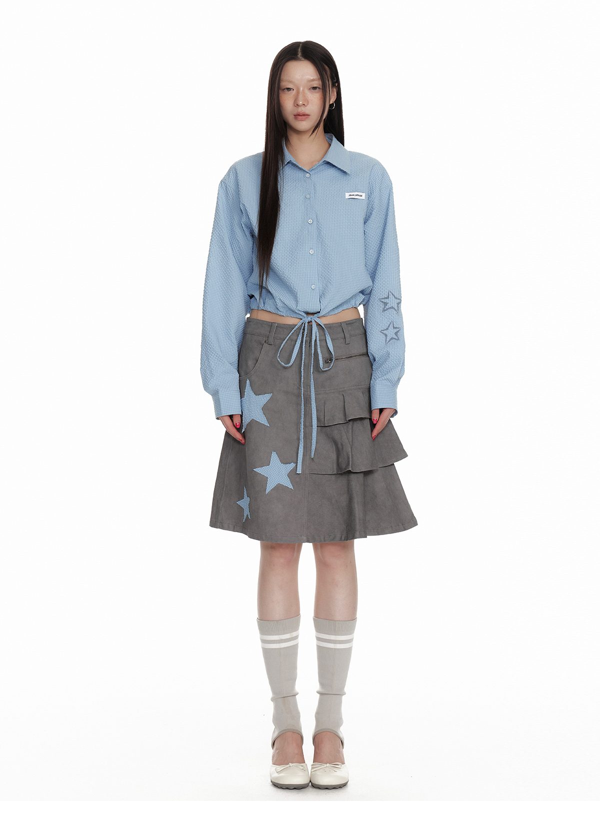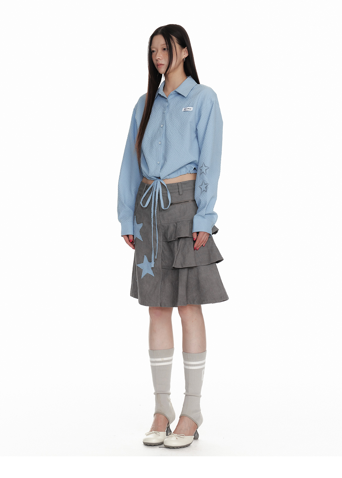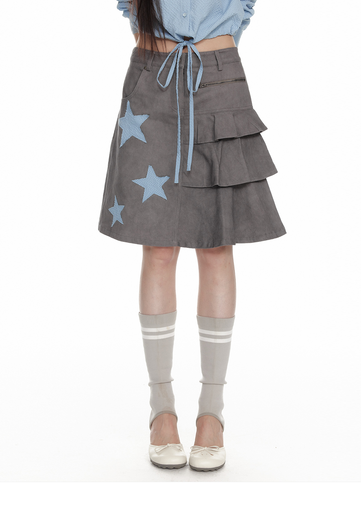Ruffled Plaid Star Pleated Midi Skirt NA7117