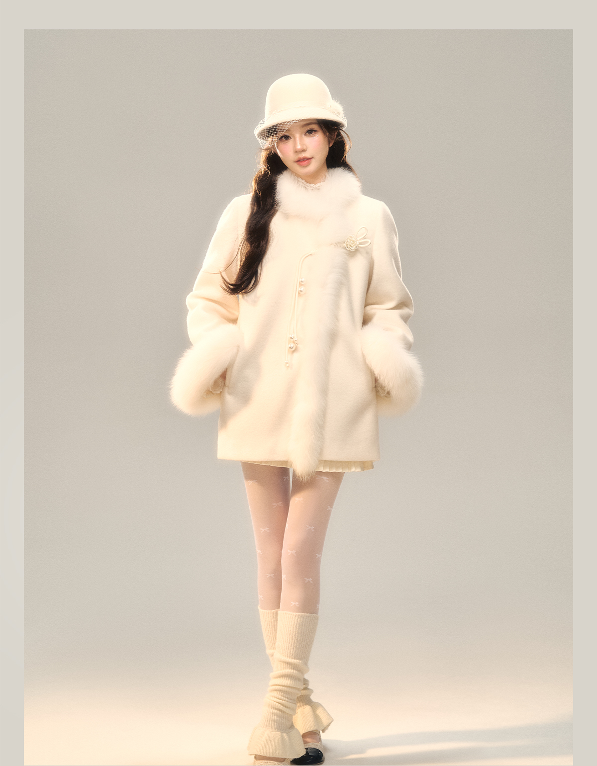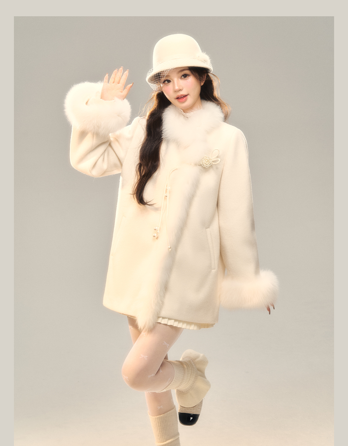 Fox Fur Trim Chinese Style Jacket NA7532