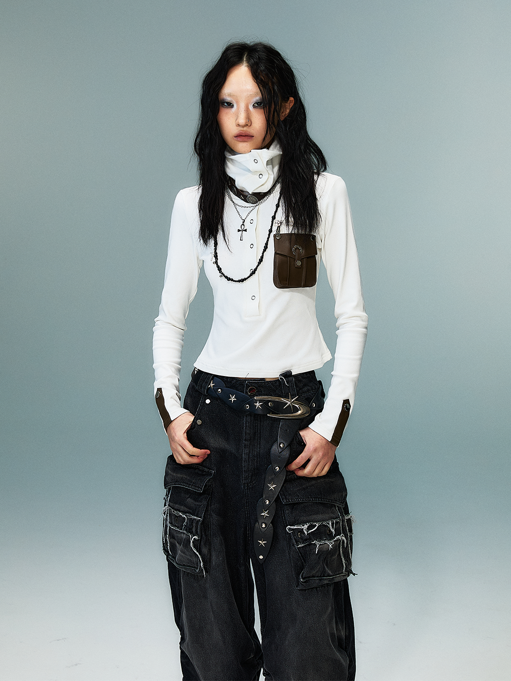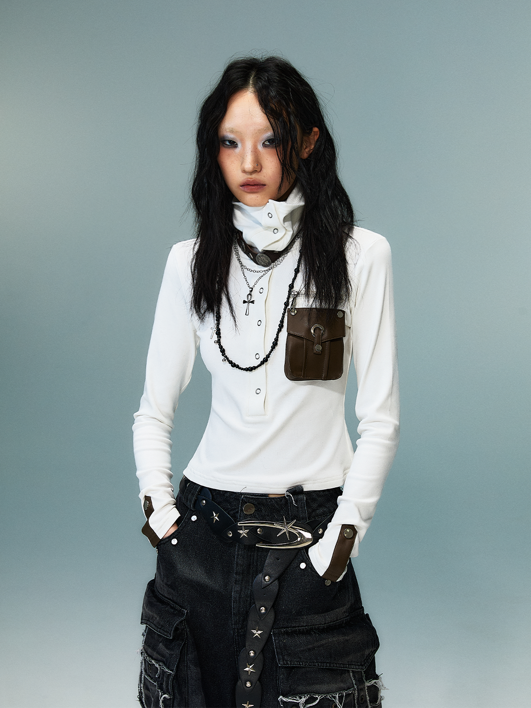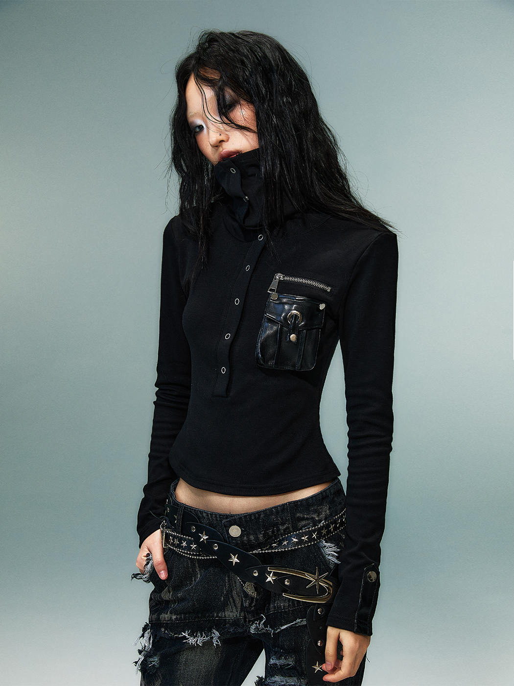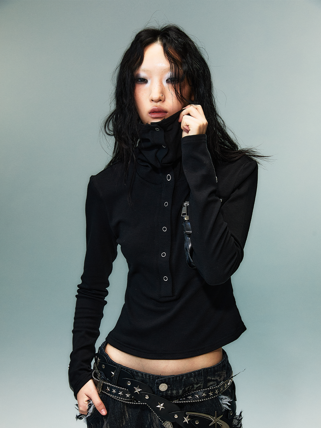 High-Neck Convertible Slim Knit Long Sleeve Shirt NA8139
