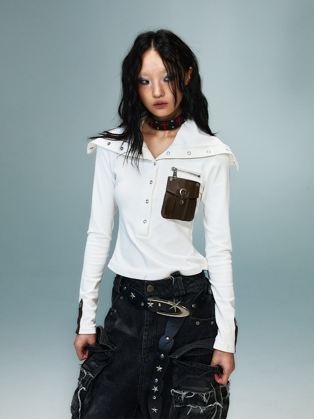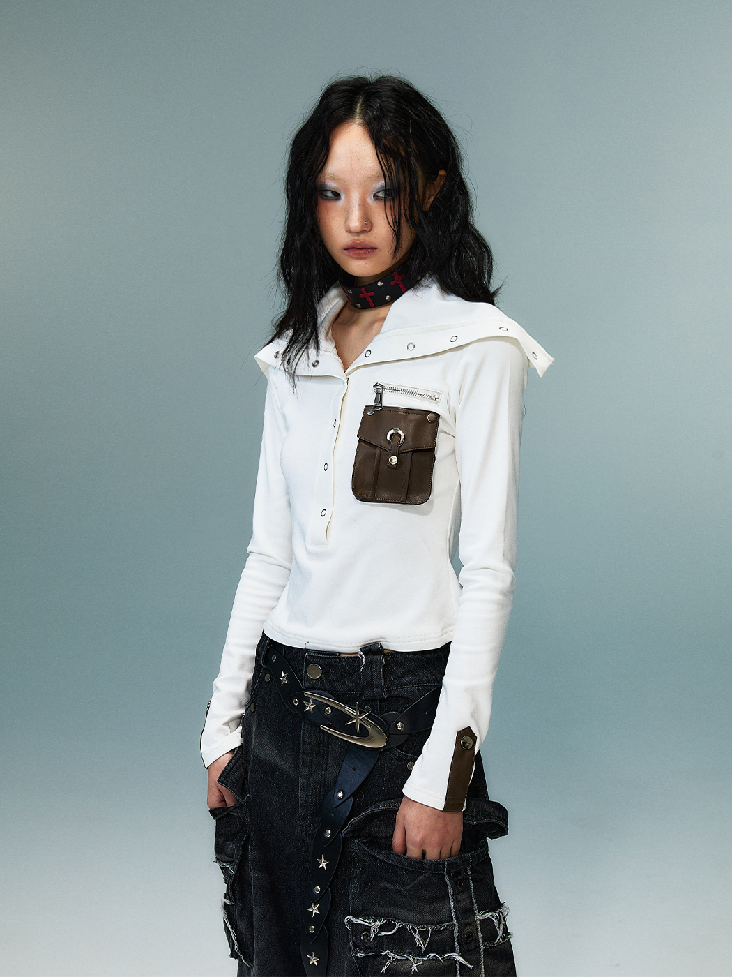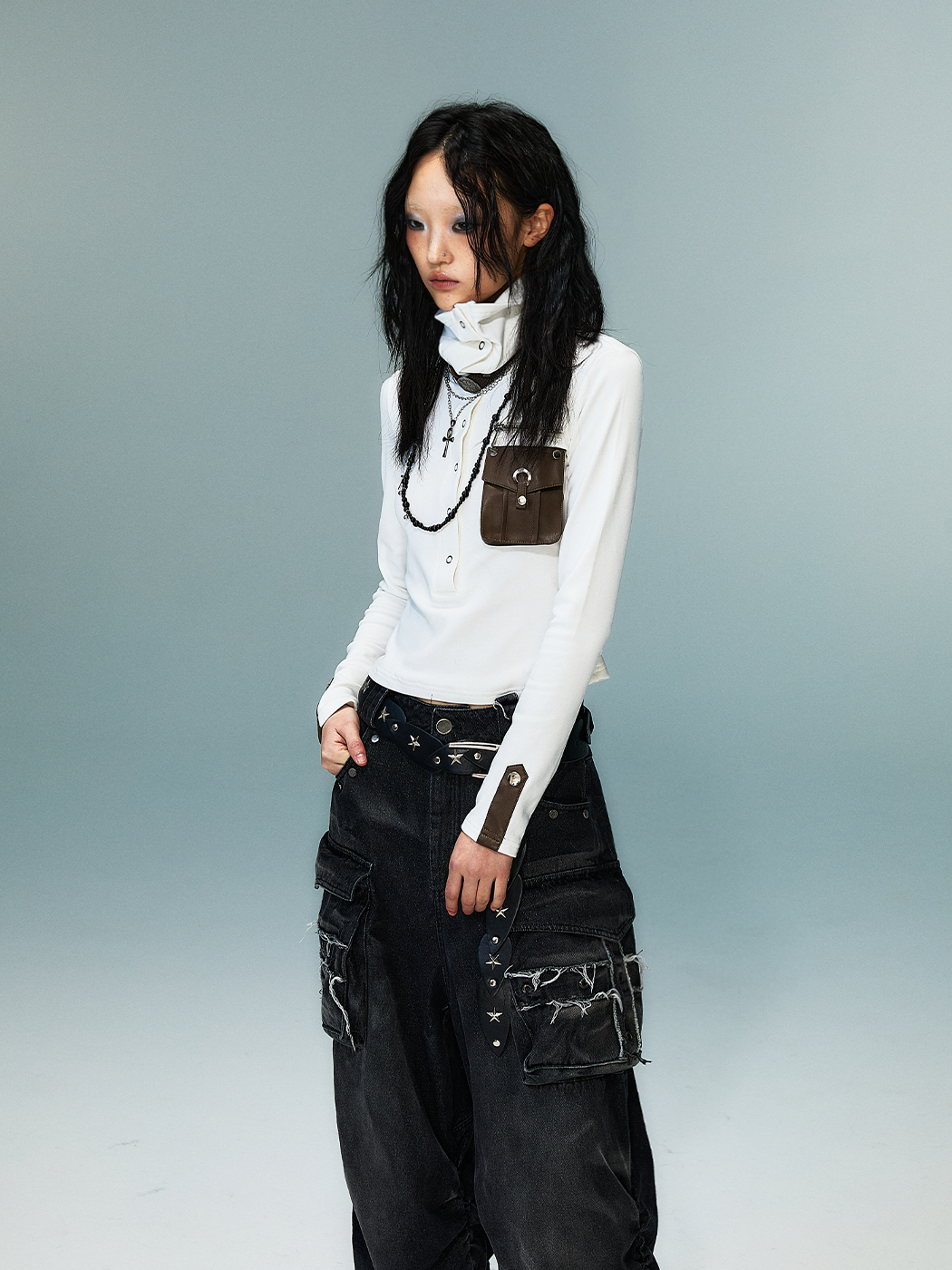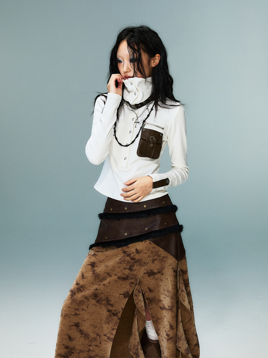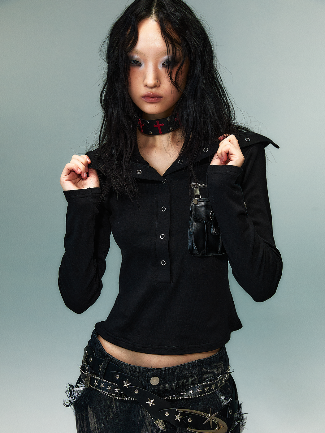 High-Neck Convertible Slim Knit Long Sleeve Shirt NA8139