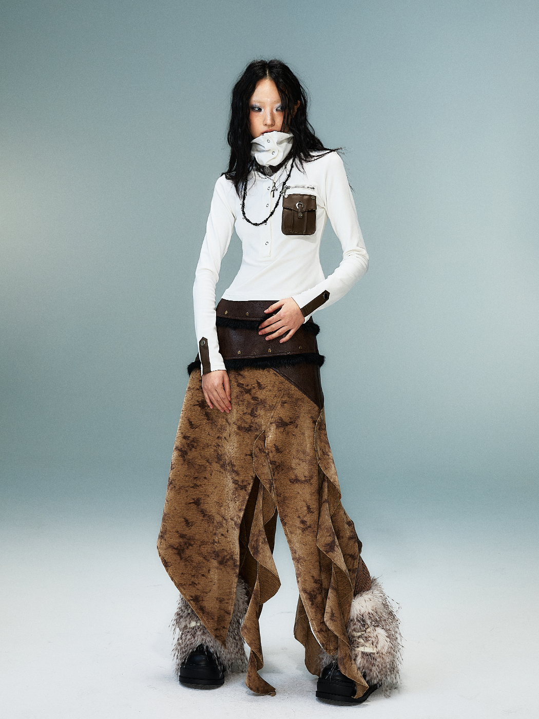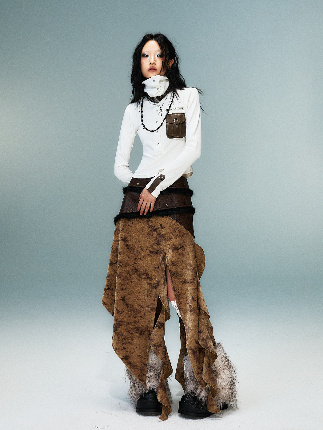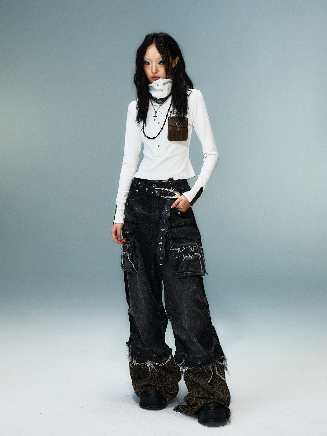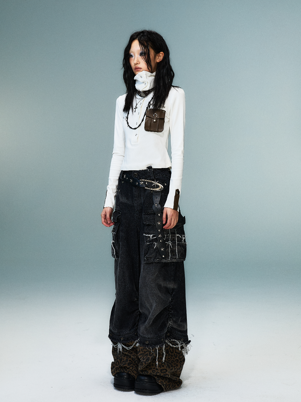 High-Neck Convertible Slim Knit Long Sleeve Shirt NA8139