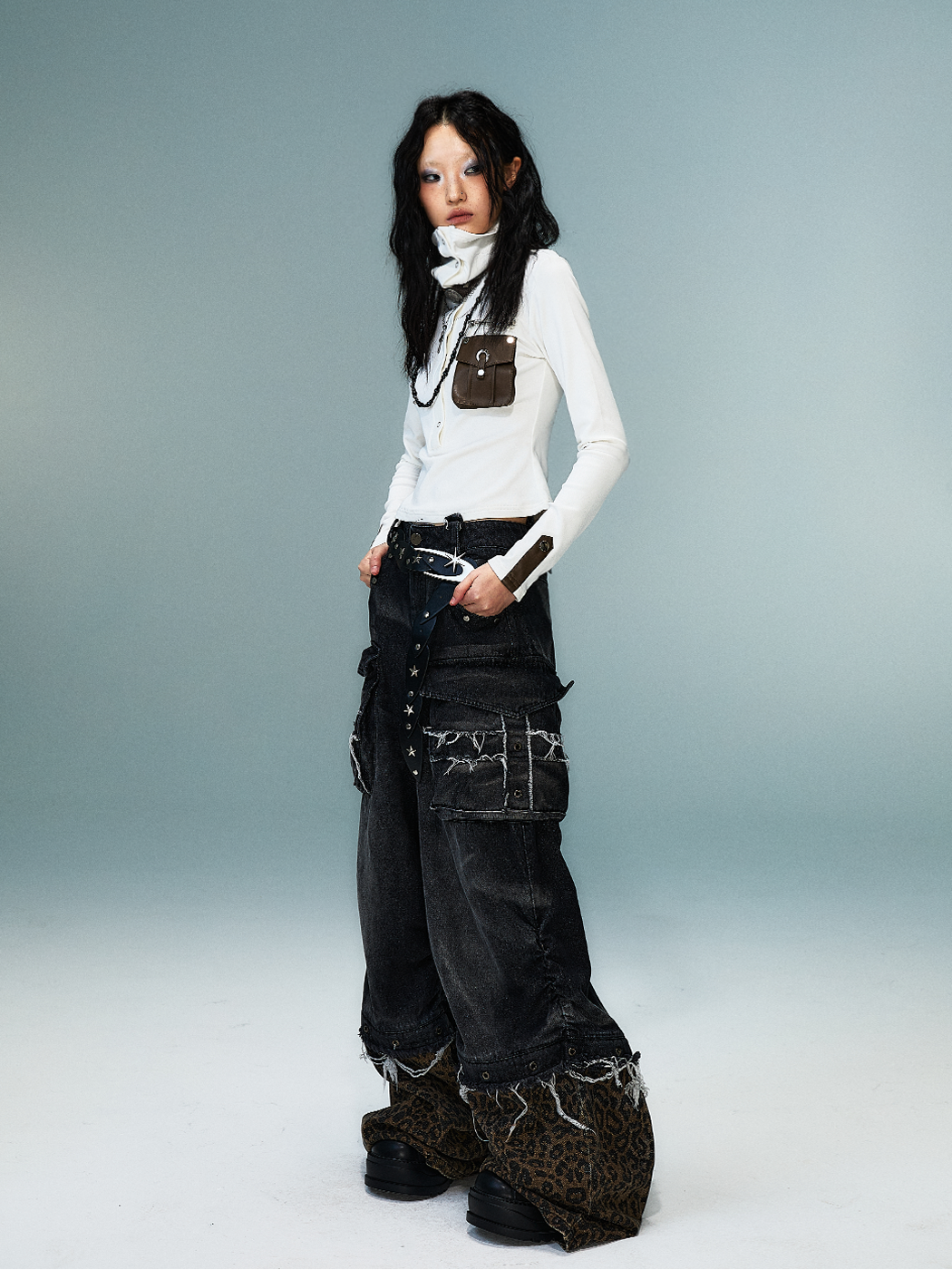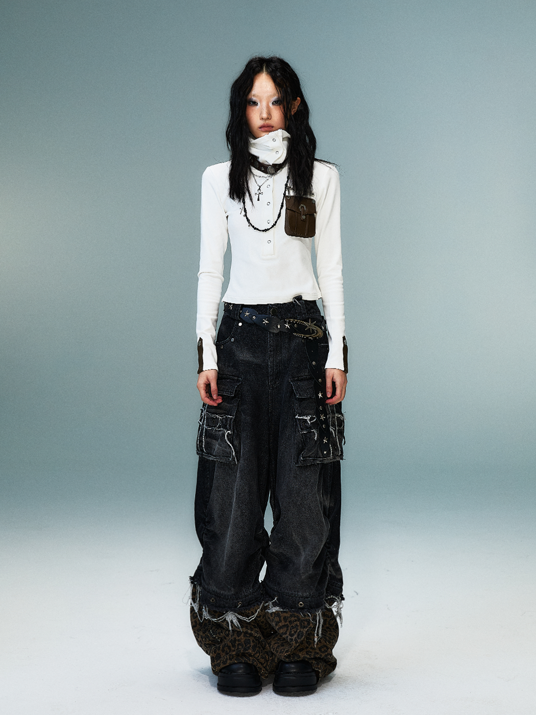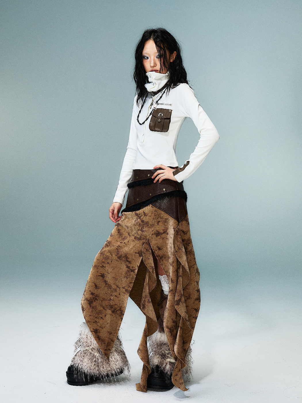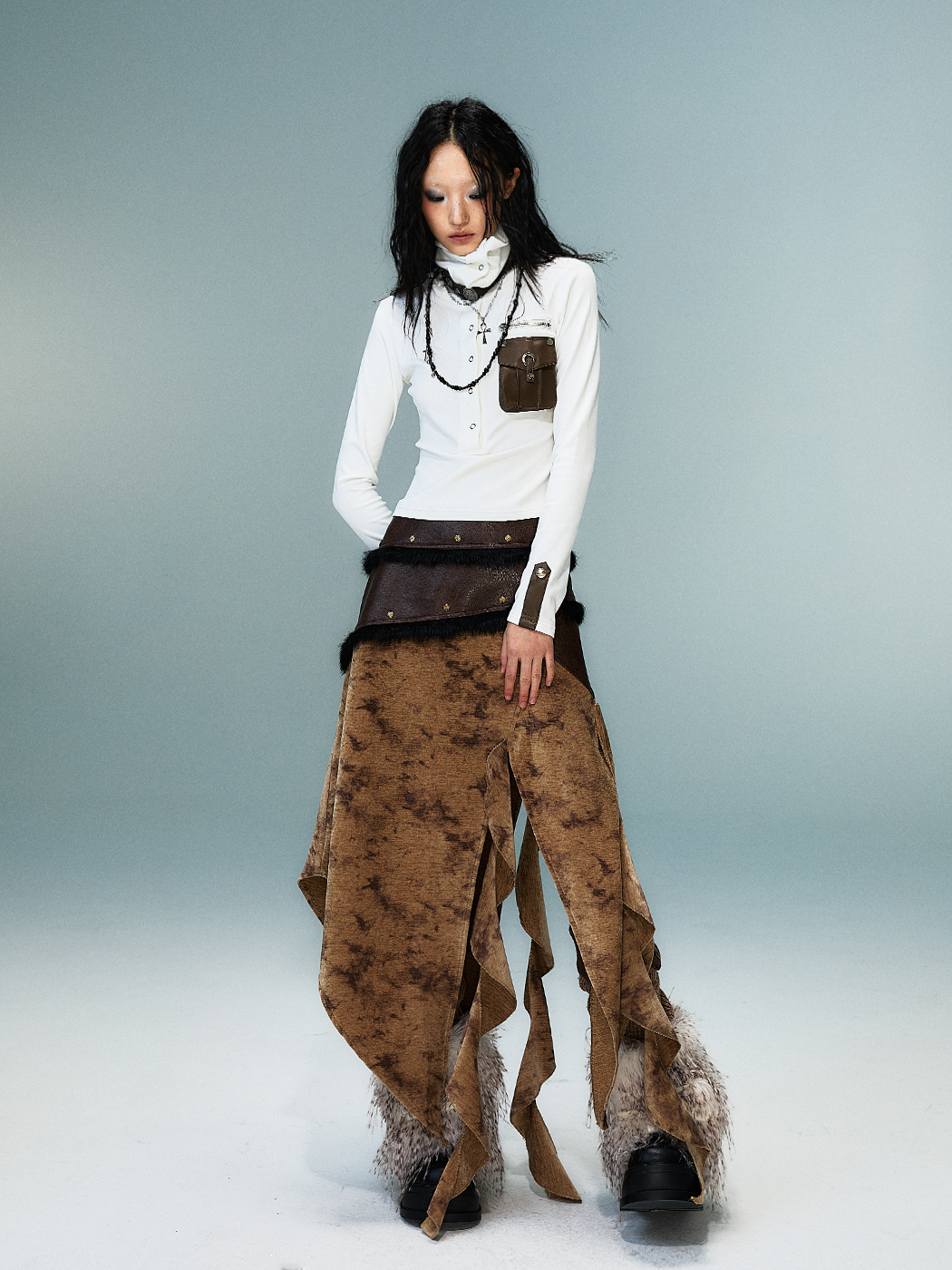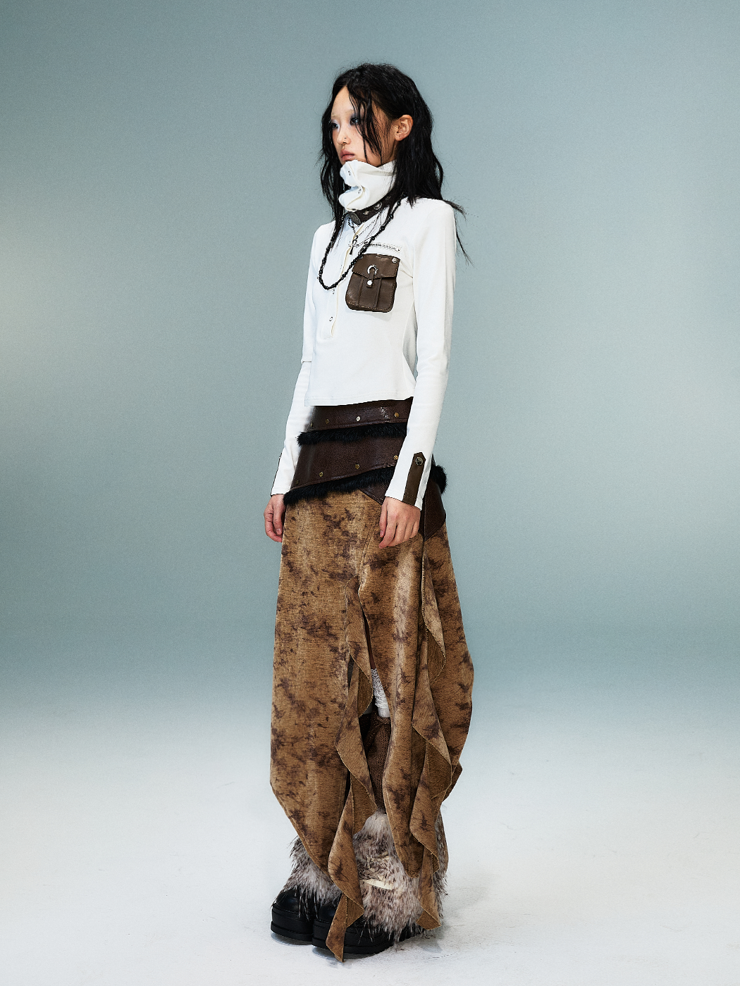 High-Neck Convertible Slim Knit Long Sleeve Shirt NA8139