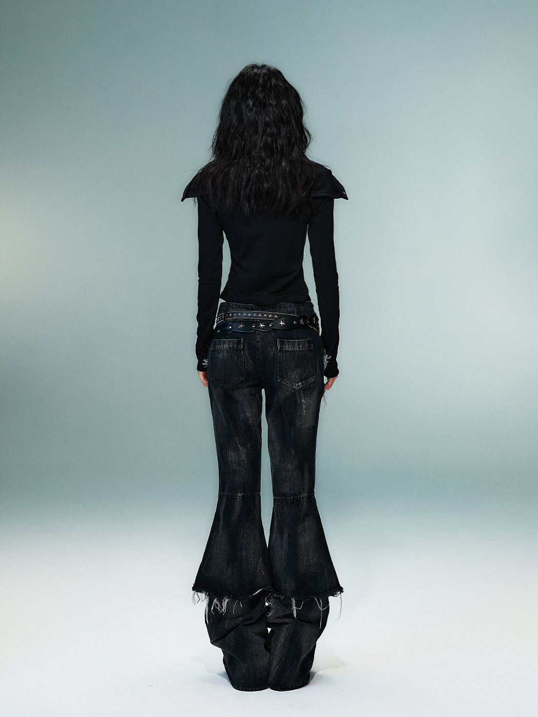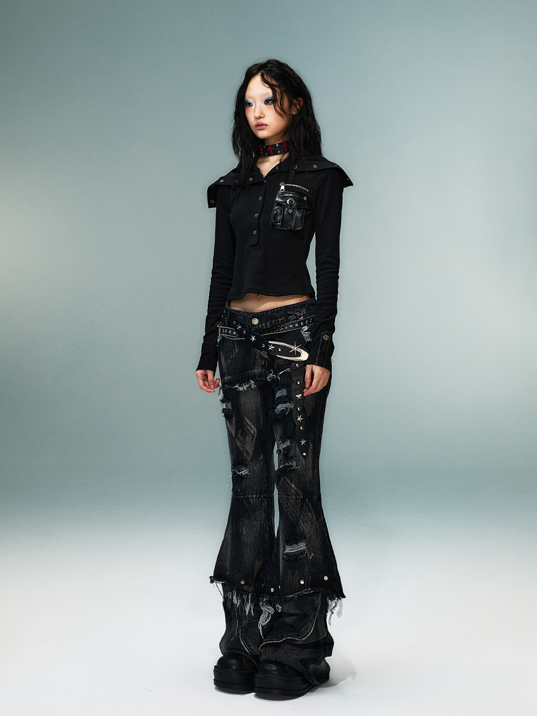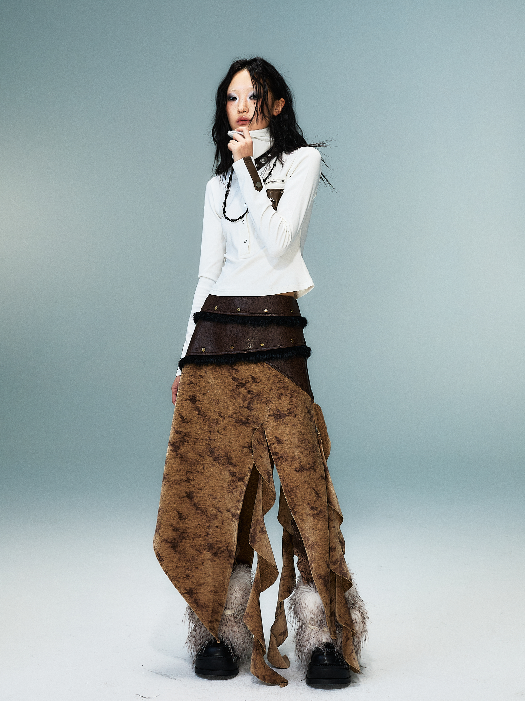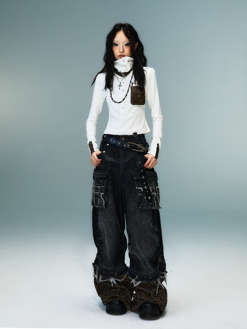 High-Neck Convertible Slim Knit Long Sleeve Shirt NA8139