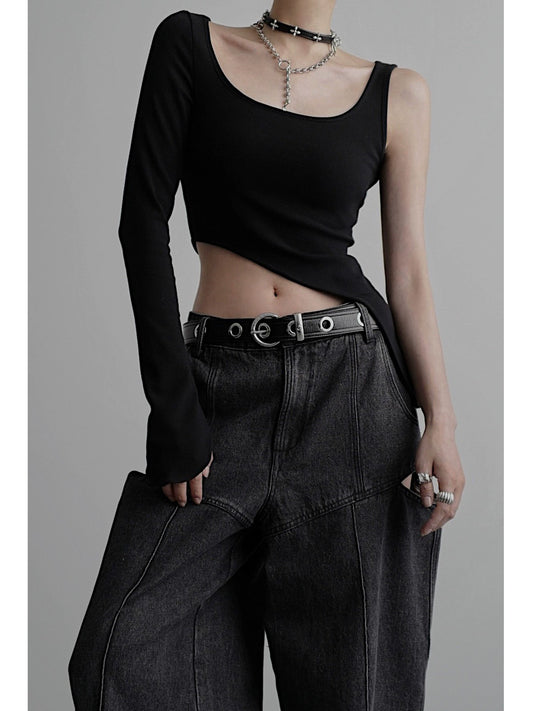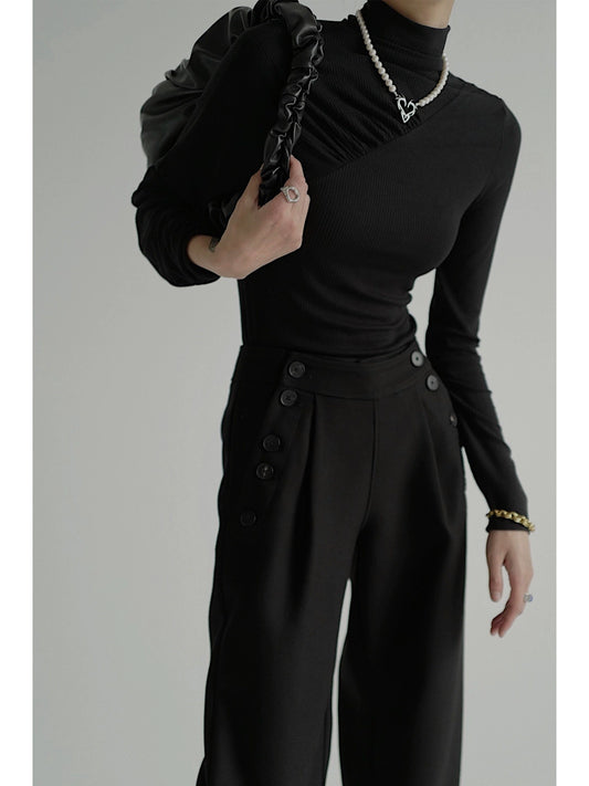 Stand Neck Asymmetric Long Sleeve Knit Top NA4198