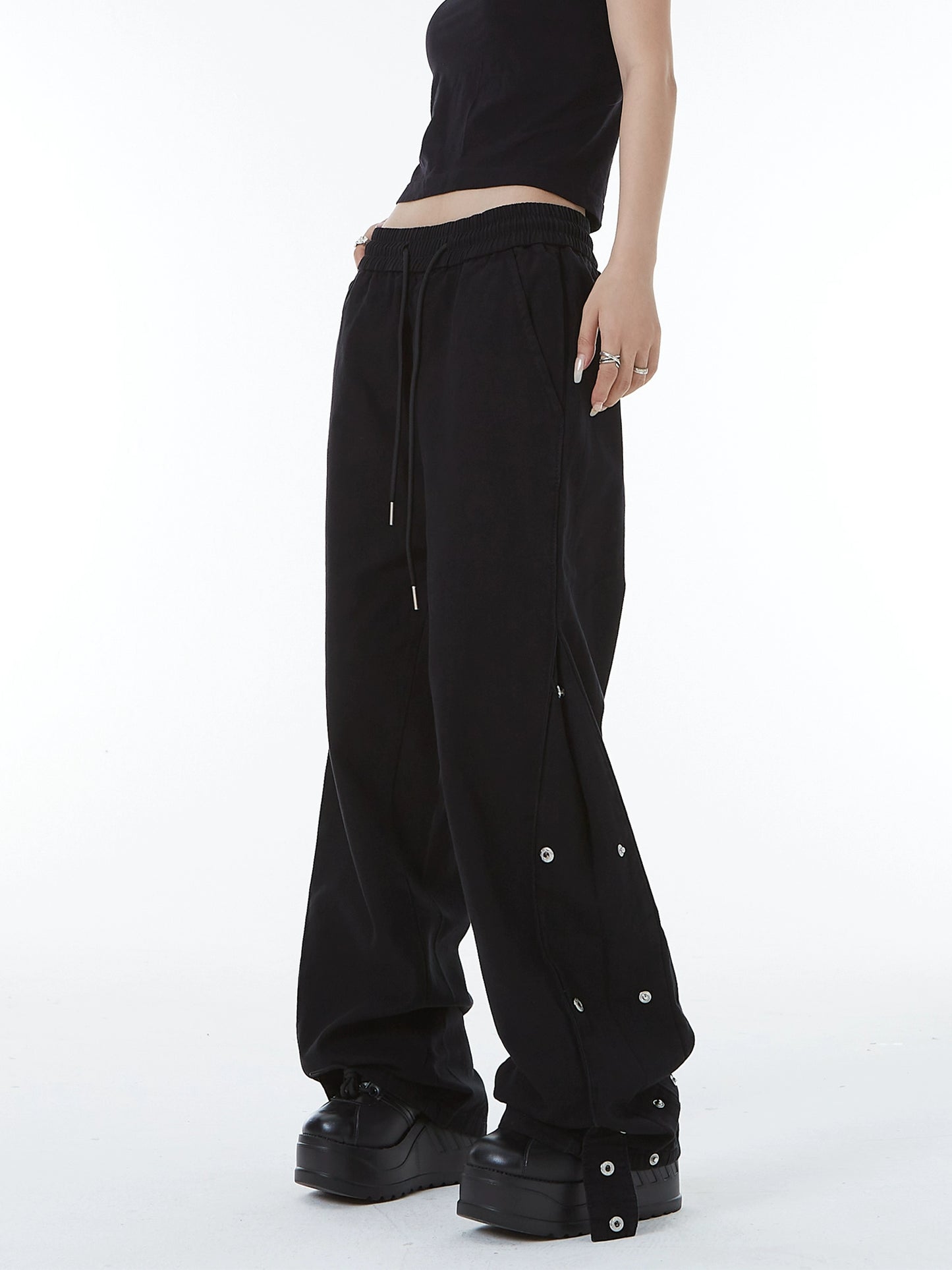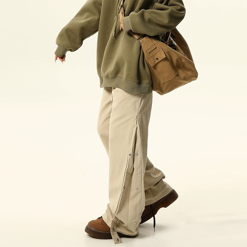With Hidden Side Buckle Straps Wide-Leg Straight Pants NA3184