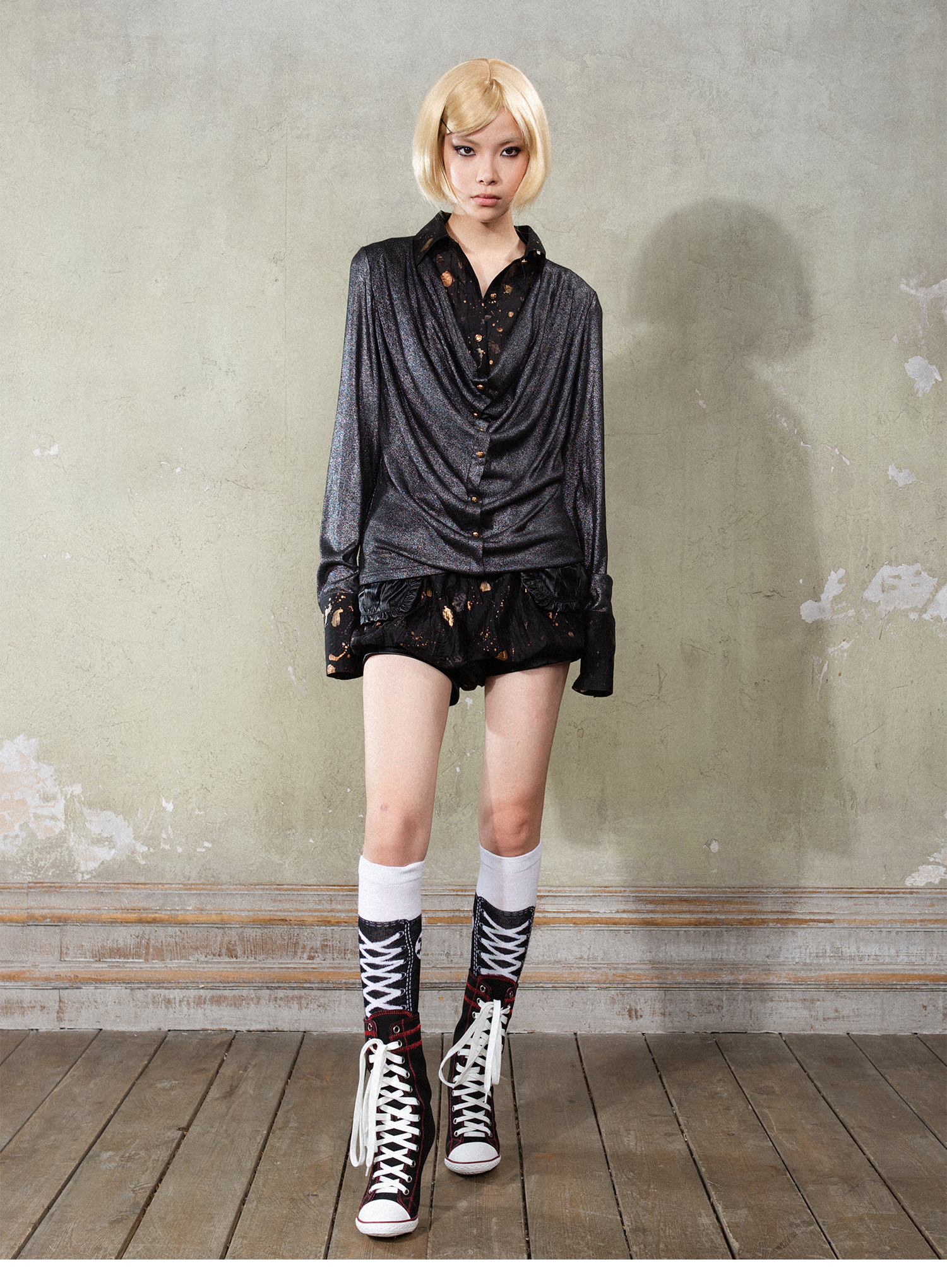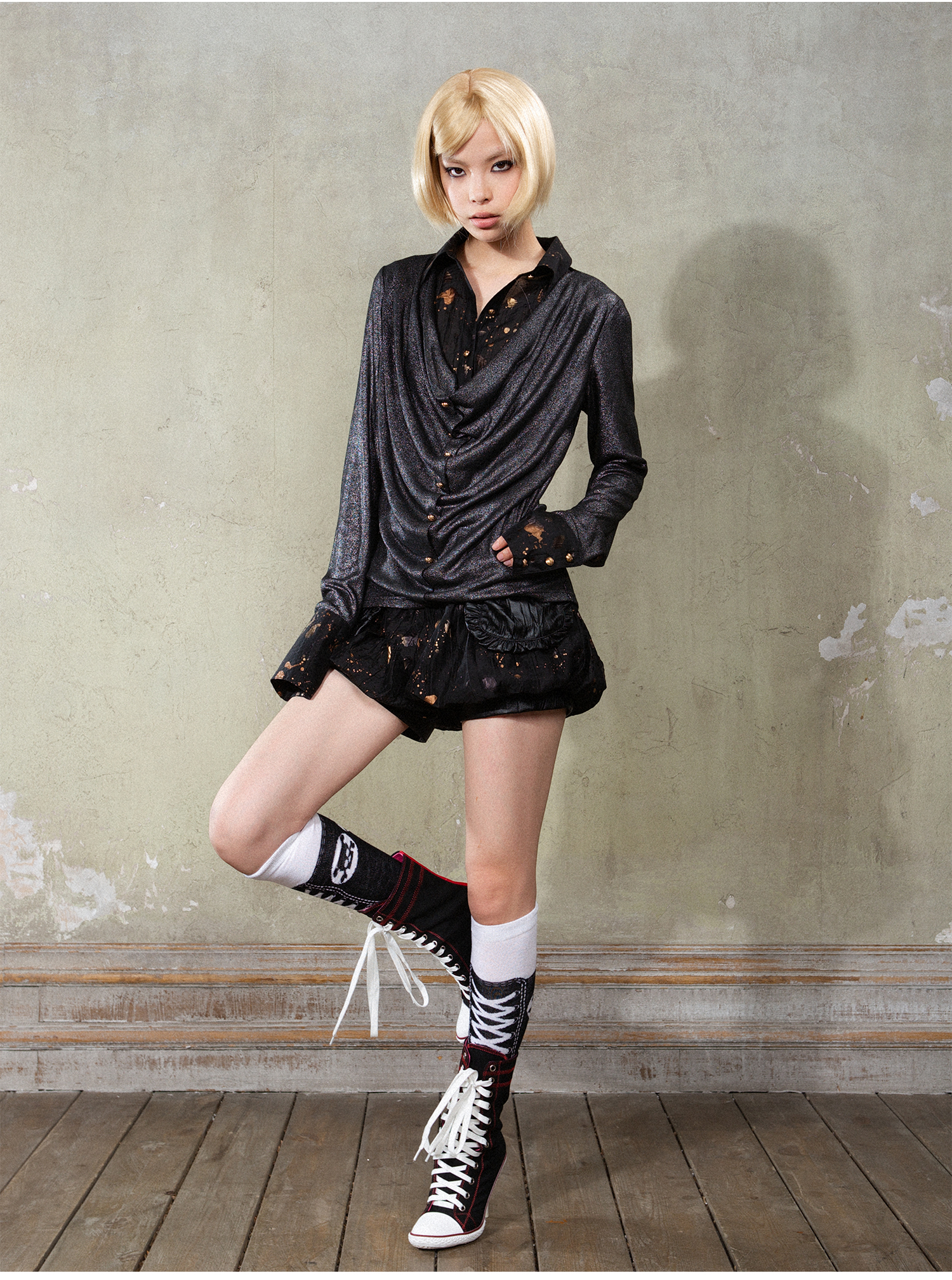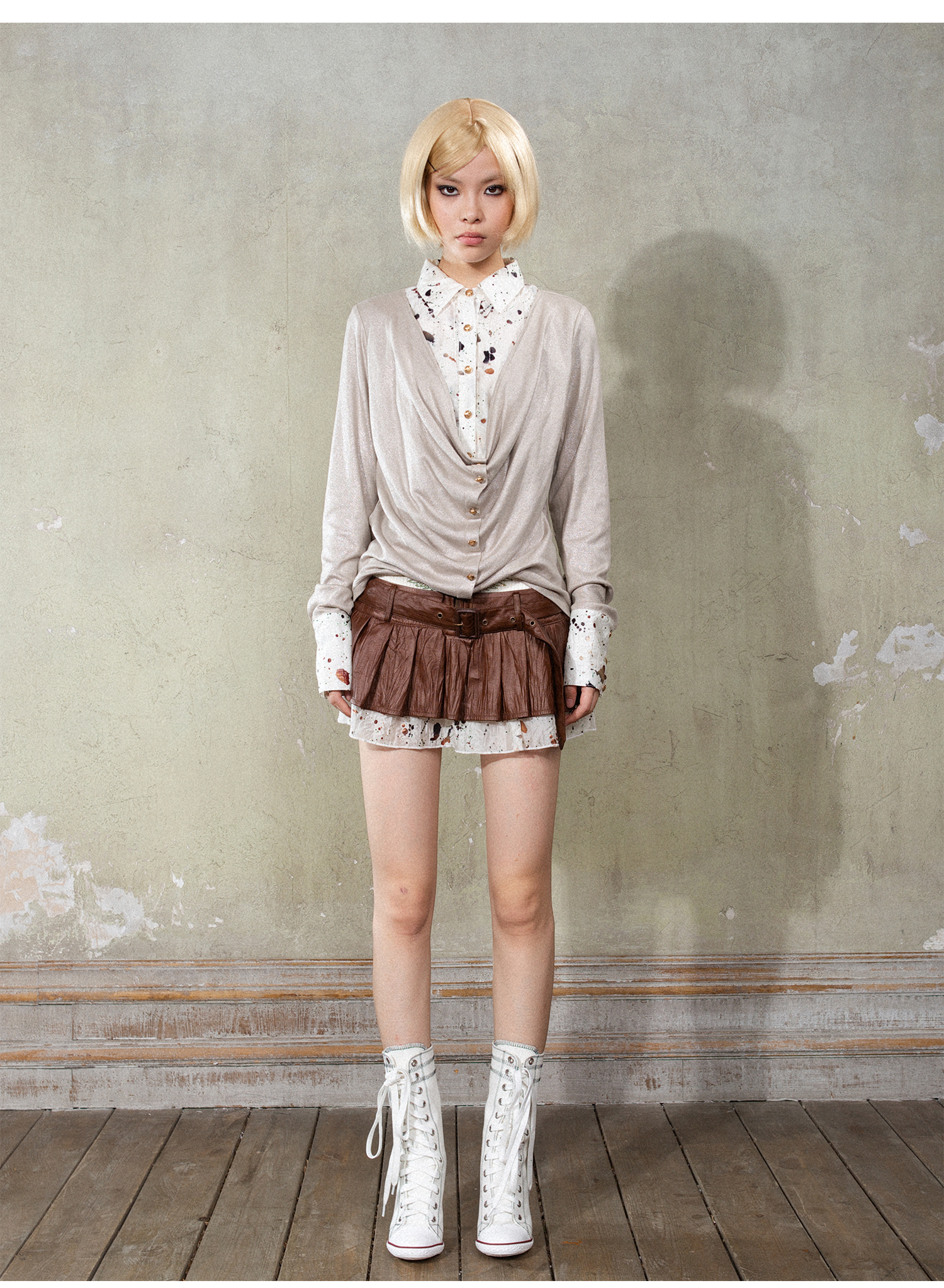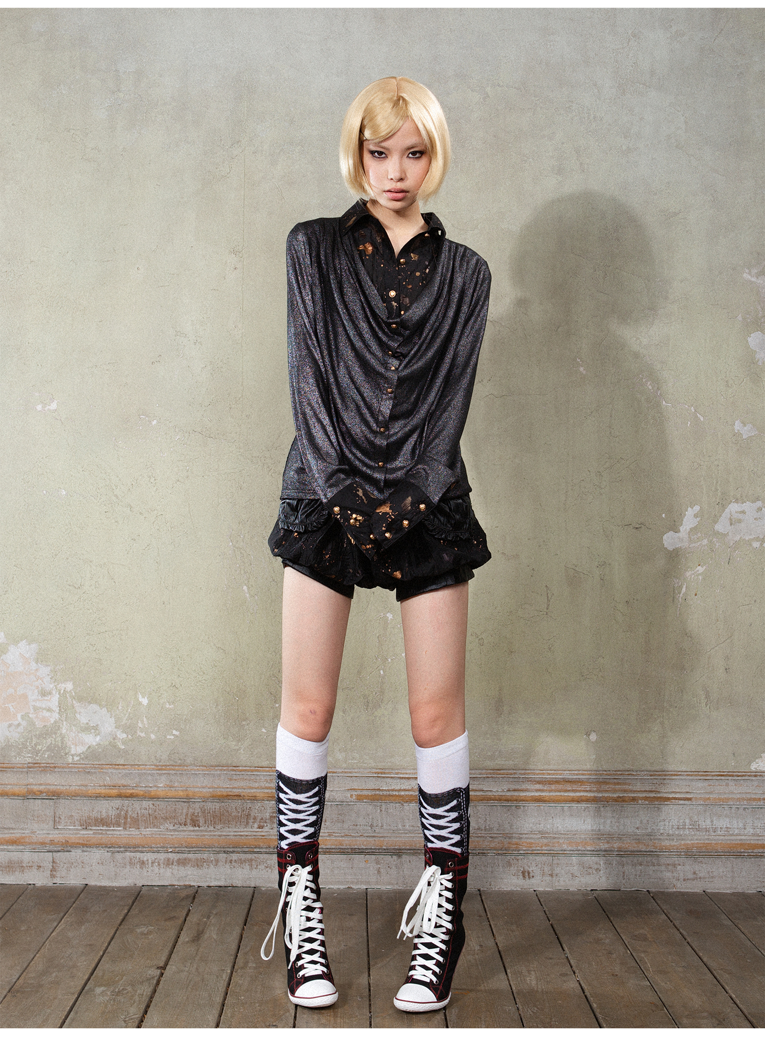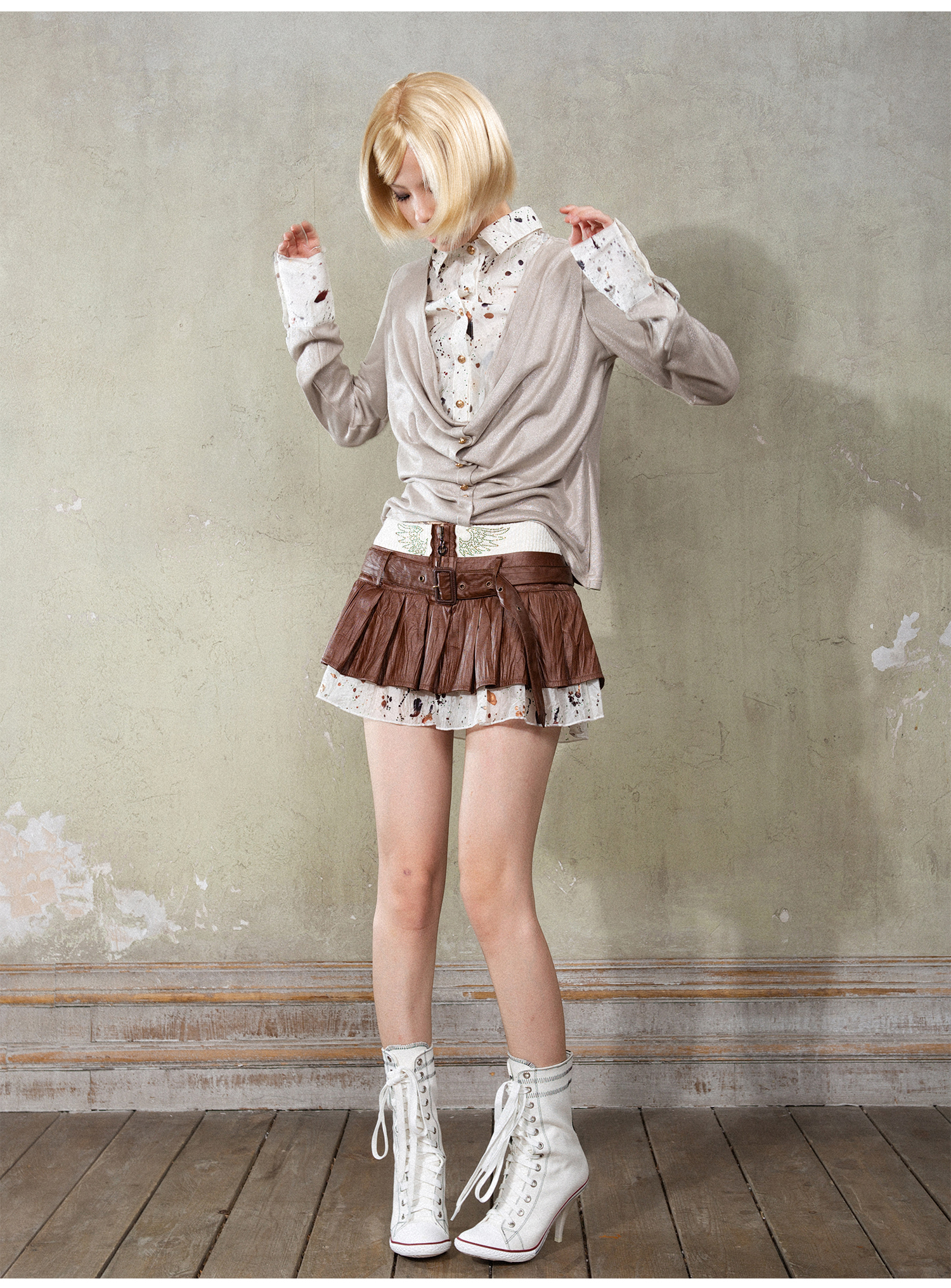 V-Neck Fake Layered Patchwork Long Sleeve Shirt NA6183