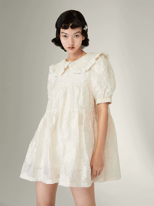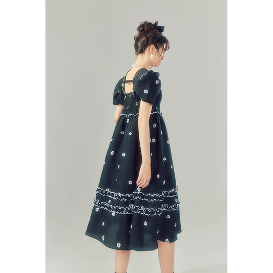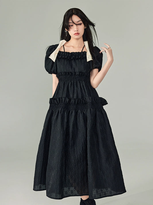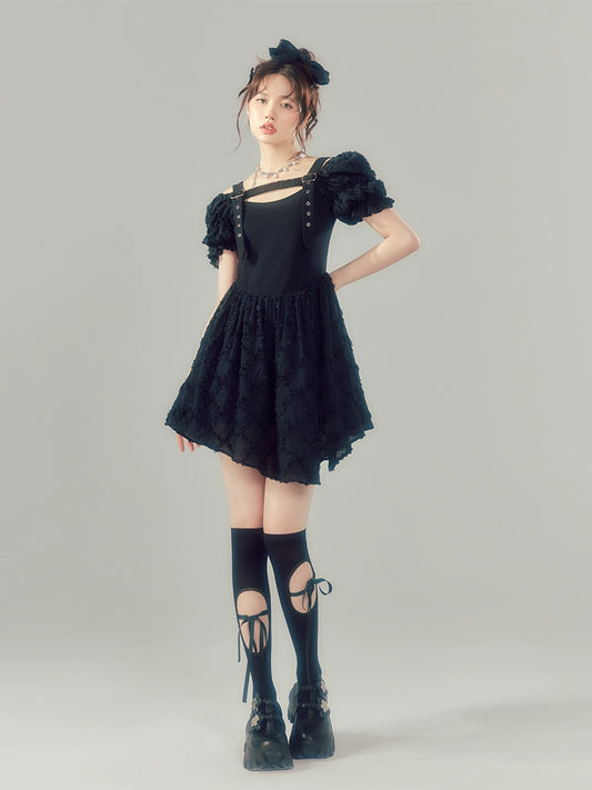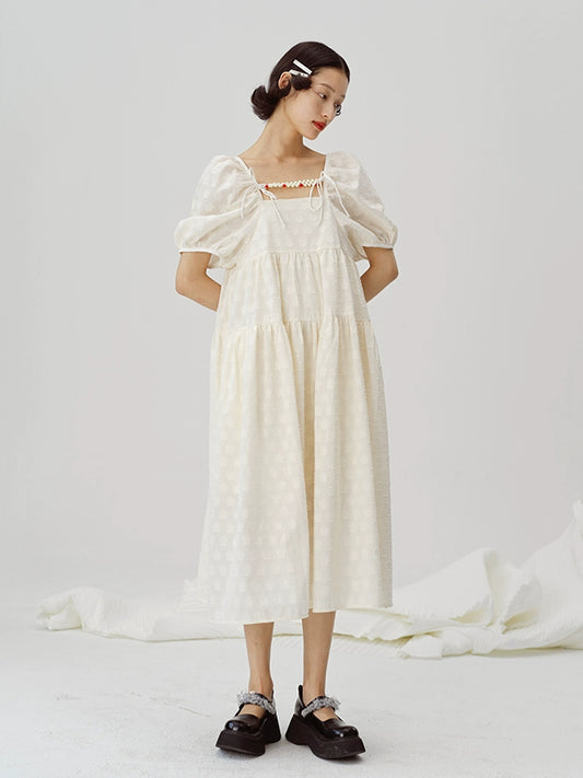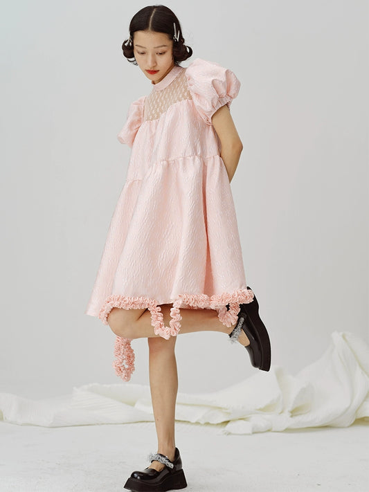 Bubble Sleeve Lace Splicing A-line Dress NA5403