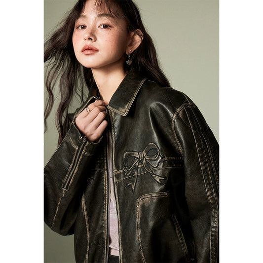 Bow Print Long Sleeve Zipper Hoodie NA5424