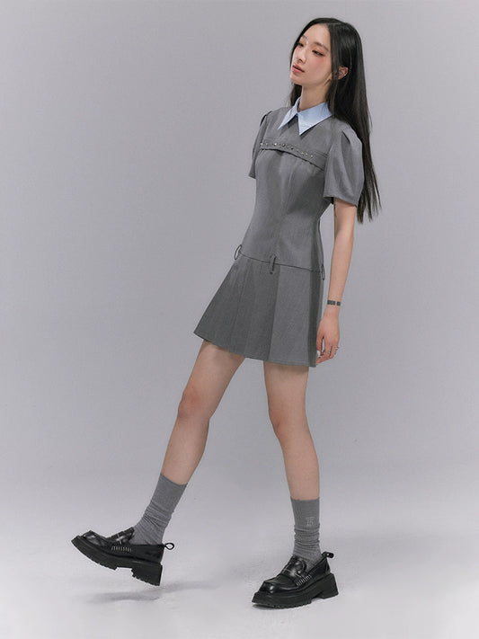 Contrast Color Short Sleeve A-line Short Skirt Dress NA5441