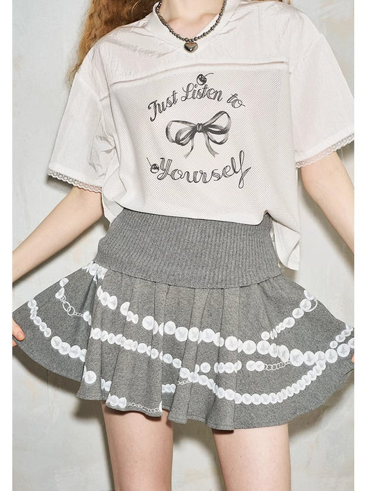 Bow Print V-neck Short Sleeved T-Shirt NA5412
