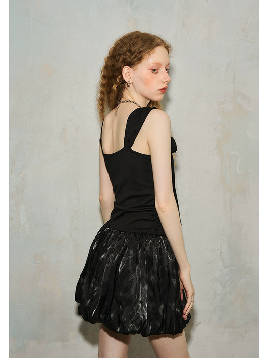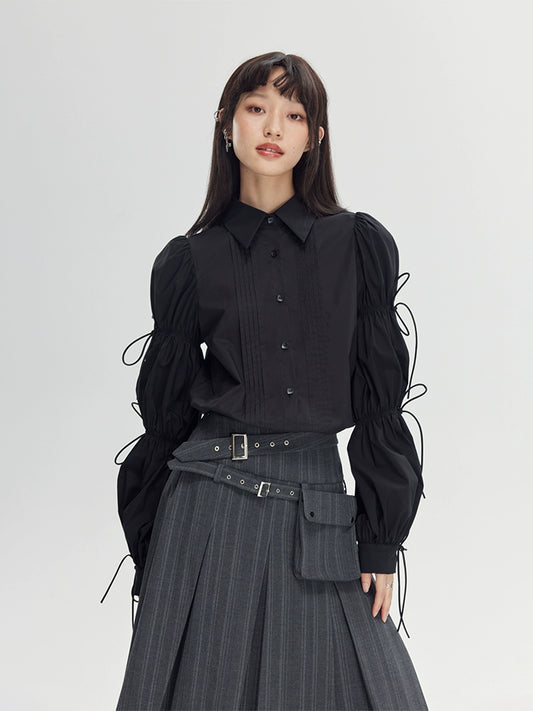Lantern Sleeves Wrinkled Bow Shirt NA5350