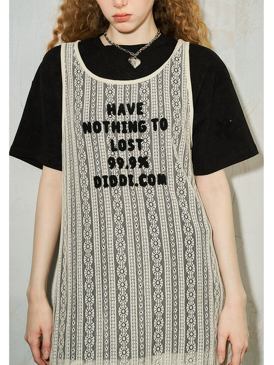 Embroidery Hollow Lace Tank Top Dress NA5371