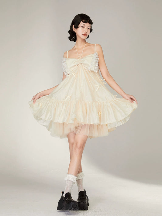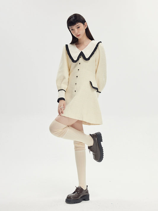 Lace Patchwork Embroidery French Bubble Sleeve Dress NA5378