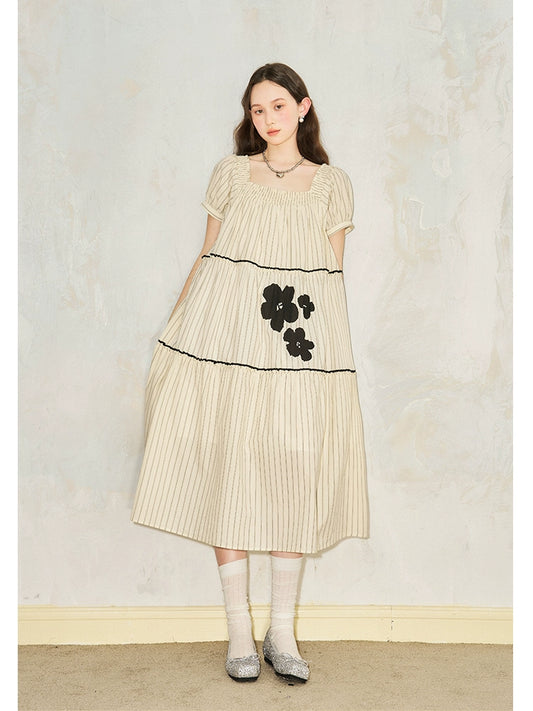 Bubble Sleeves Flower Slimming Long Dress NA5375
