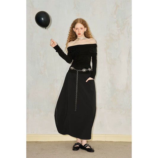 Bow Off Shoulder Long Sleeve T-shirt NA5355