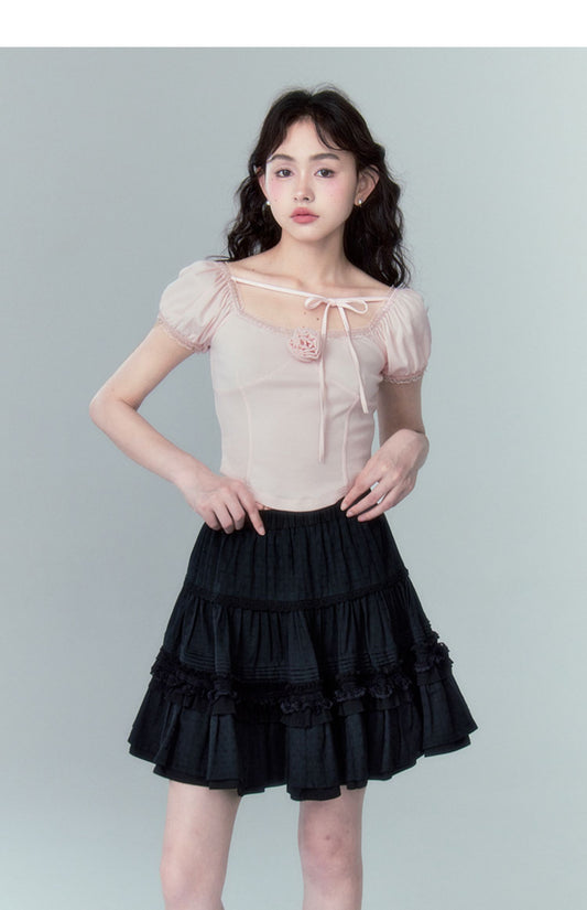 High Waist Jacquard Lace Fluffy Short Skirt NA5398