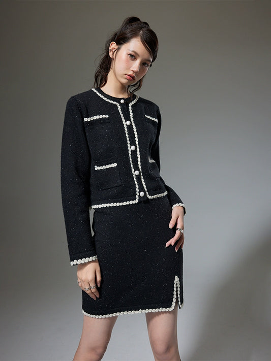 Lace Design Short Knit Jacket & High Waist Knit Skirt Setup NA5396