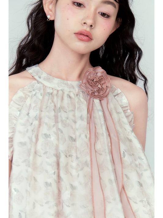 Print Embroidery Style Hanging Neck Flower Dress NA5360