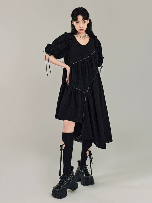 Jacquard Design Short Sleeve Dress With Irregular Hem Length NA5395