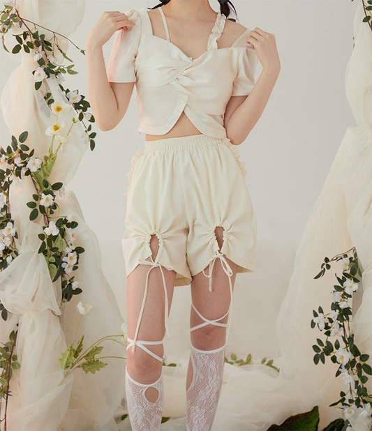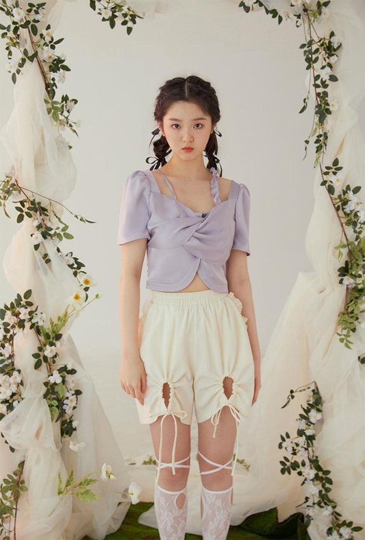 Asymmetric Chest Knot Short-sleeved Top WNW1250