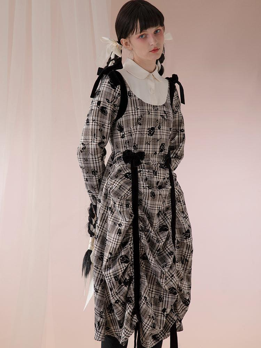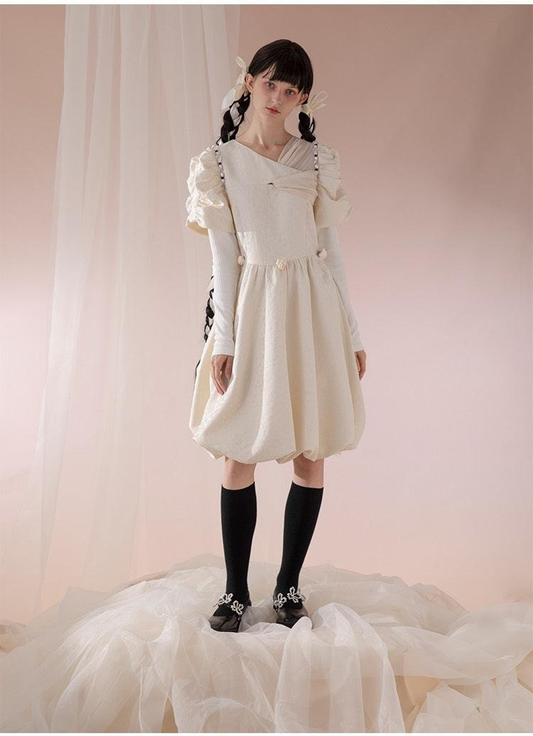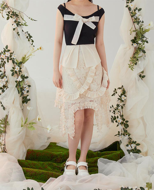 Two-wear Rose Jacquard Detachable Frill Shoulder Suspender Skirt Dress WNW1241