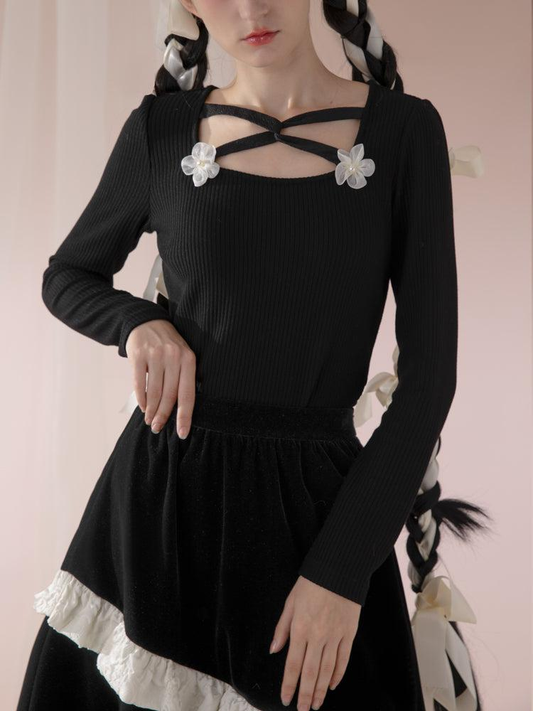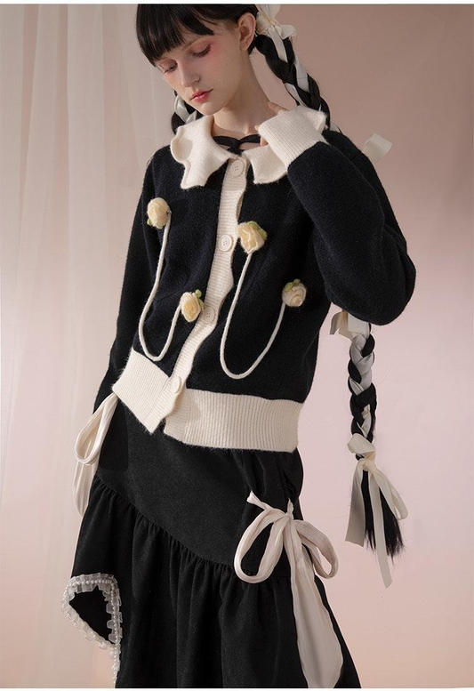 Rose Crochet Wave Collar Knit Sweater WNW1239