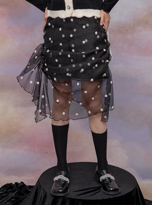 Splicing Embroidery Sheer Organza Skirt WNW1242
