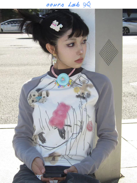 Pullover Oversize Hand-Drawn Graffiti Comic Girl Sweatshirt NA8219