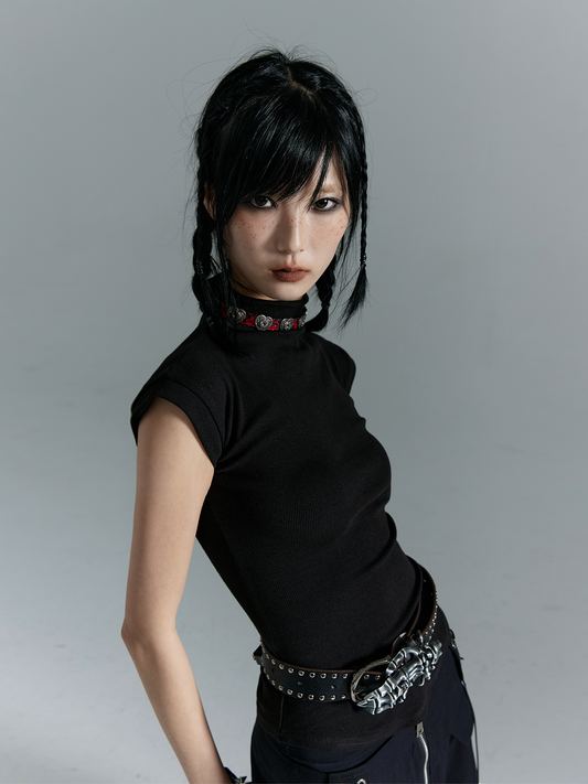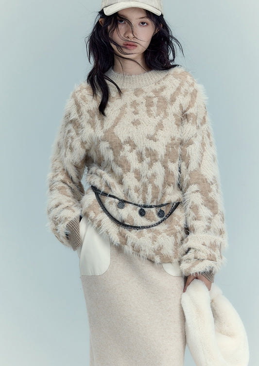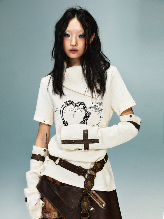 Cross Print Detachable Sleeve Knit Sweater with Belt NA8181